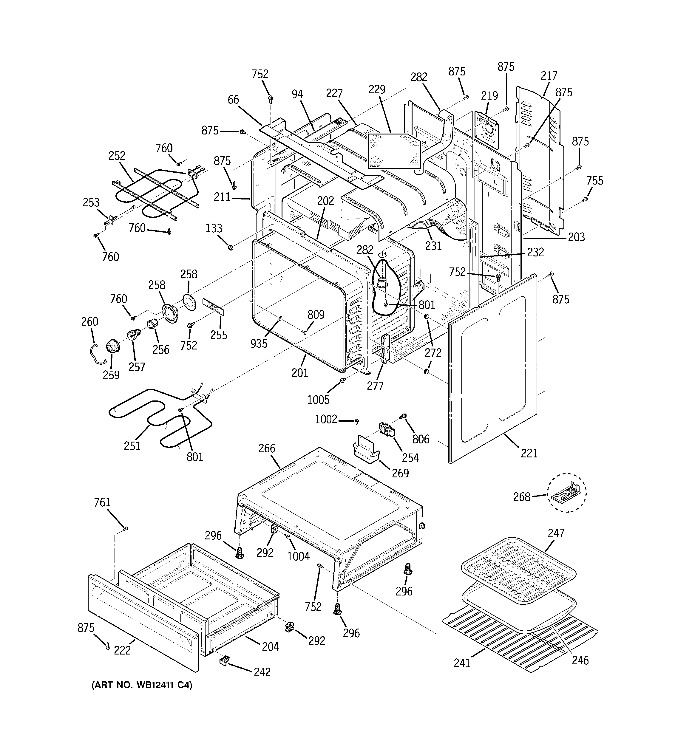 WB63X20942 GE Oven Body Weld Assembly