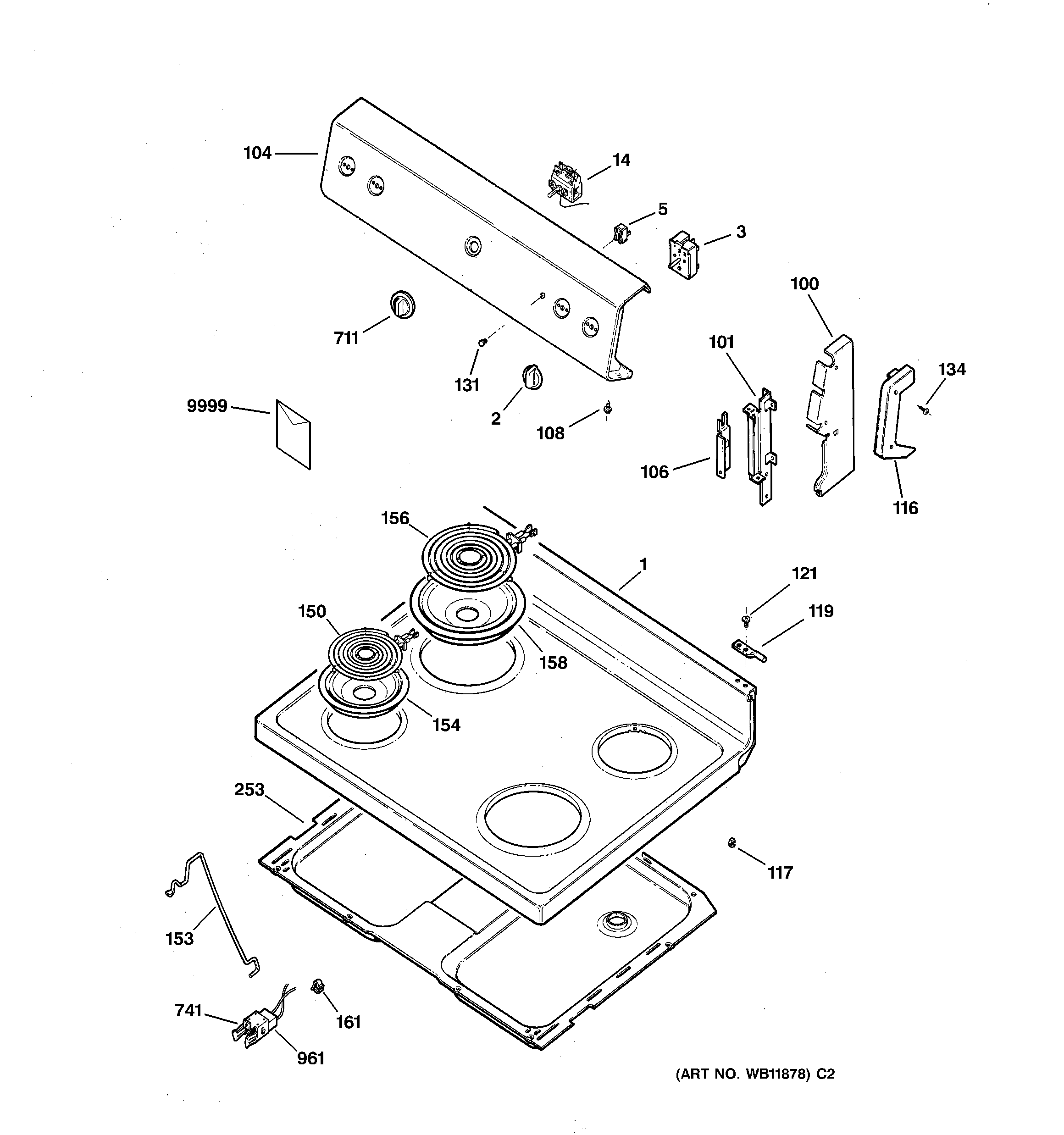 JBS03BC1WH CONTROL PANEL & COOKTOP