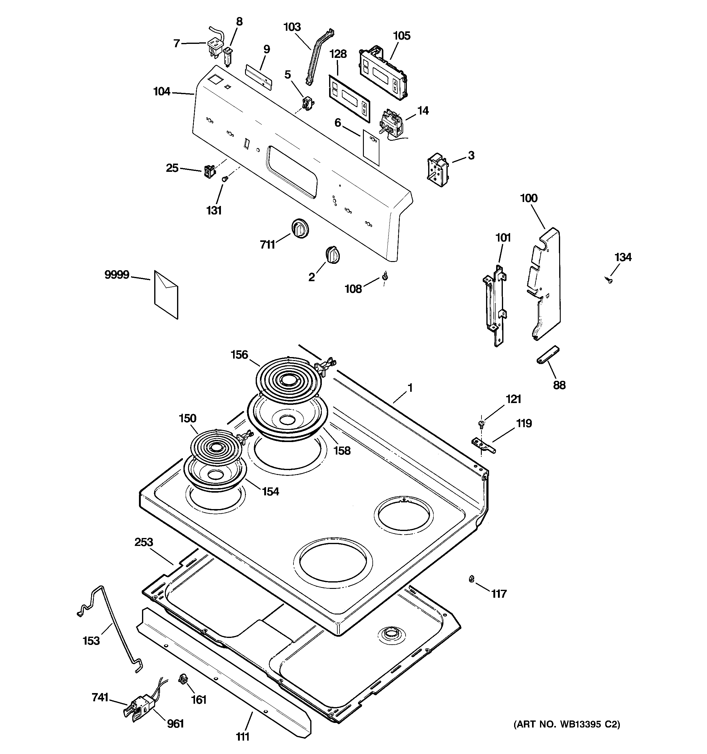 JCBS25J1BB CONTROL PANEL & COOKTOP