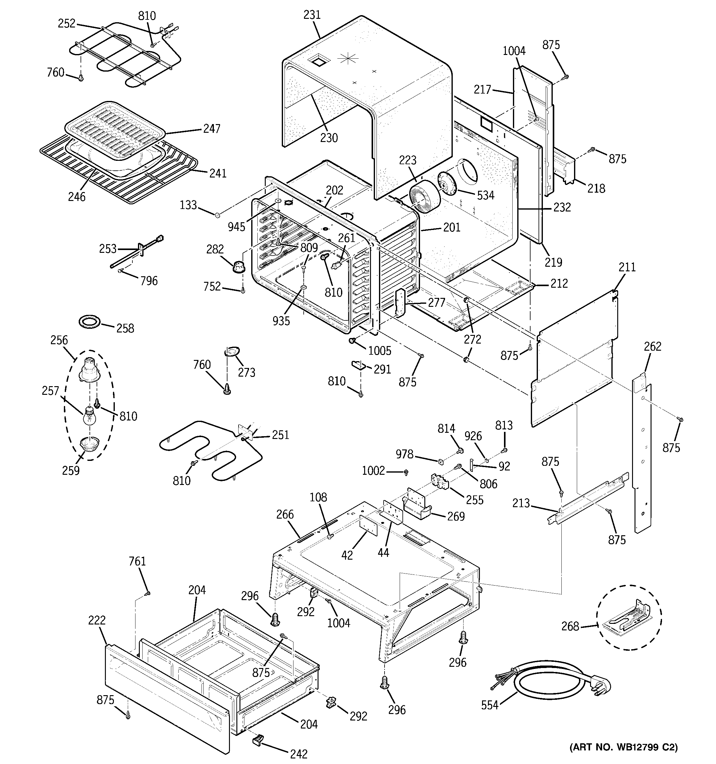 WB55T10178 GE Oven Mechanical Drawer Body Assembly