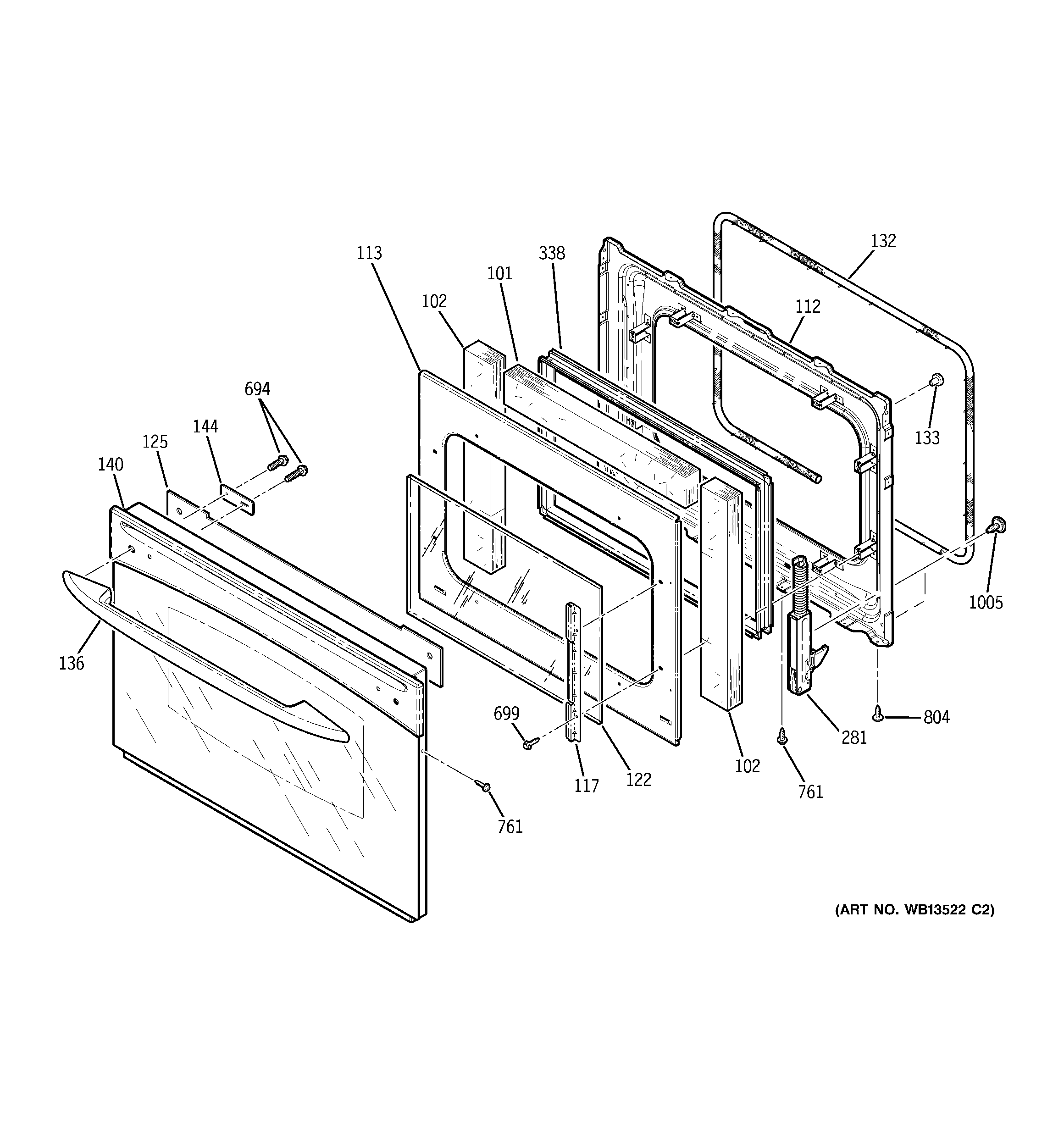 WB35X30052 GE Oven Door Insulation Assembly