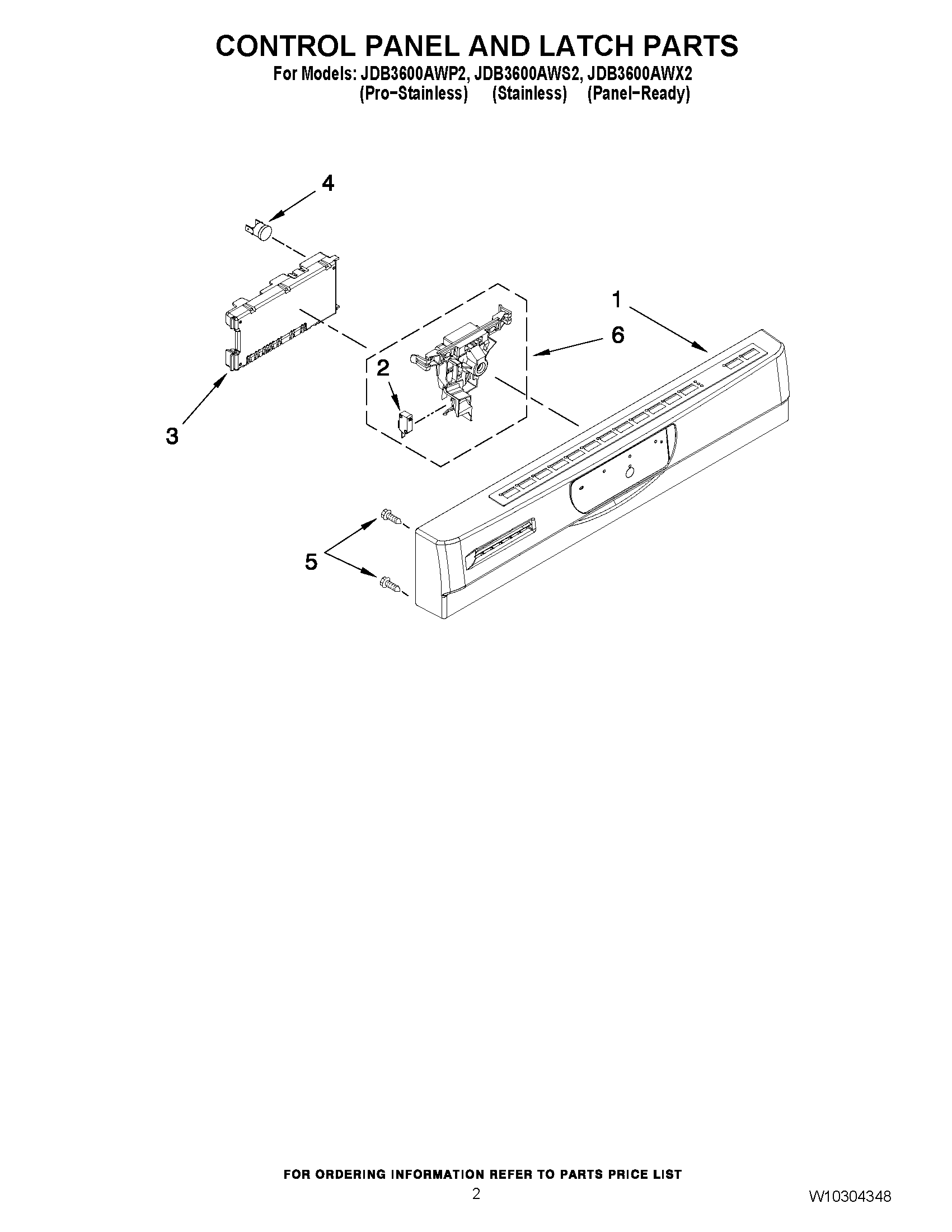 JDB3600AWX2 02 – CONTROL PANEL AND LATCH PARTS
