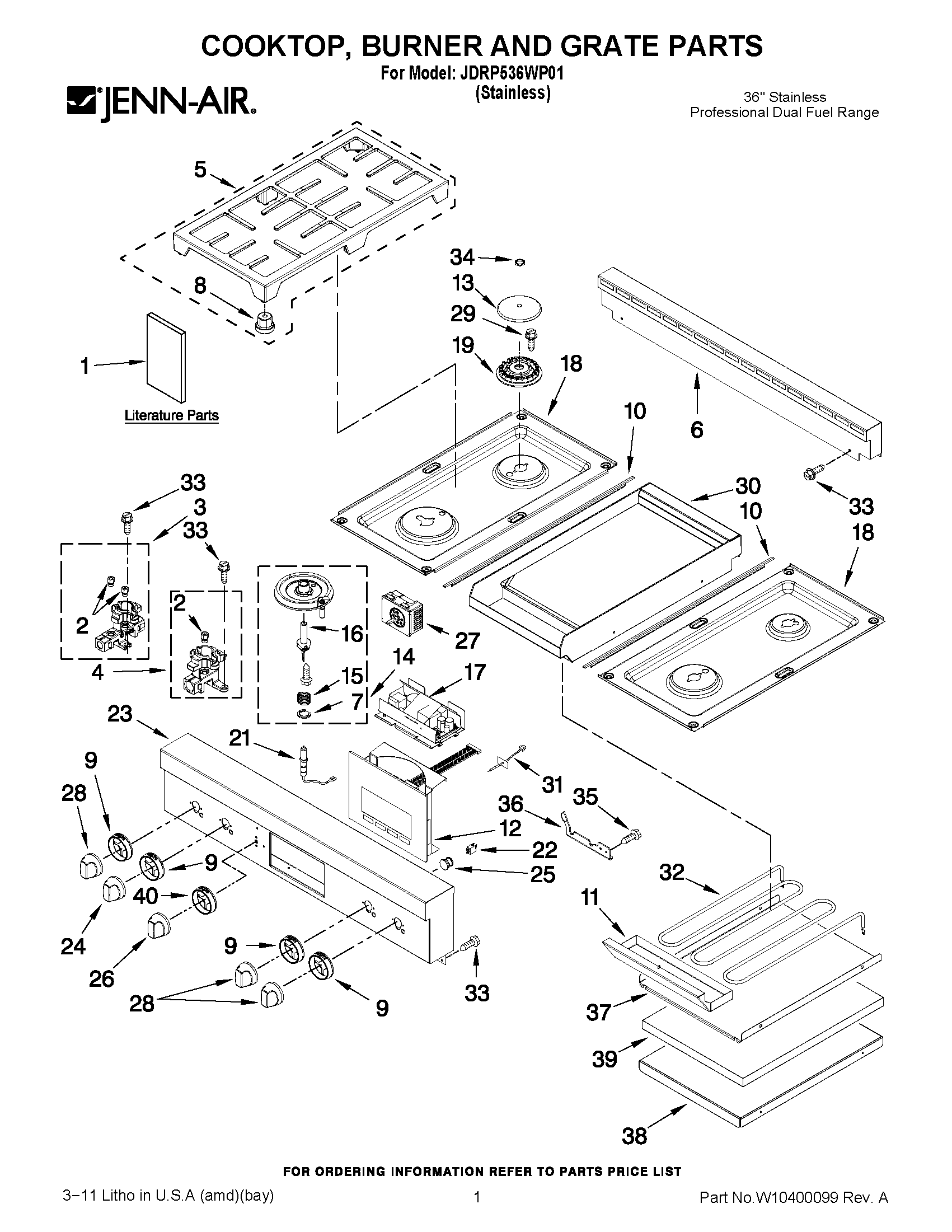 JDRP536WP01 01 – COOKTOP, BURNER AND GRATE PARTS