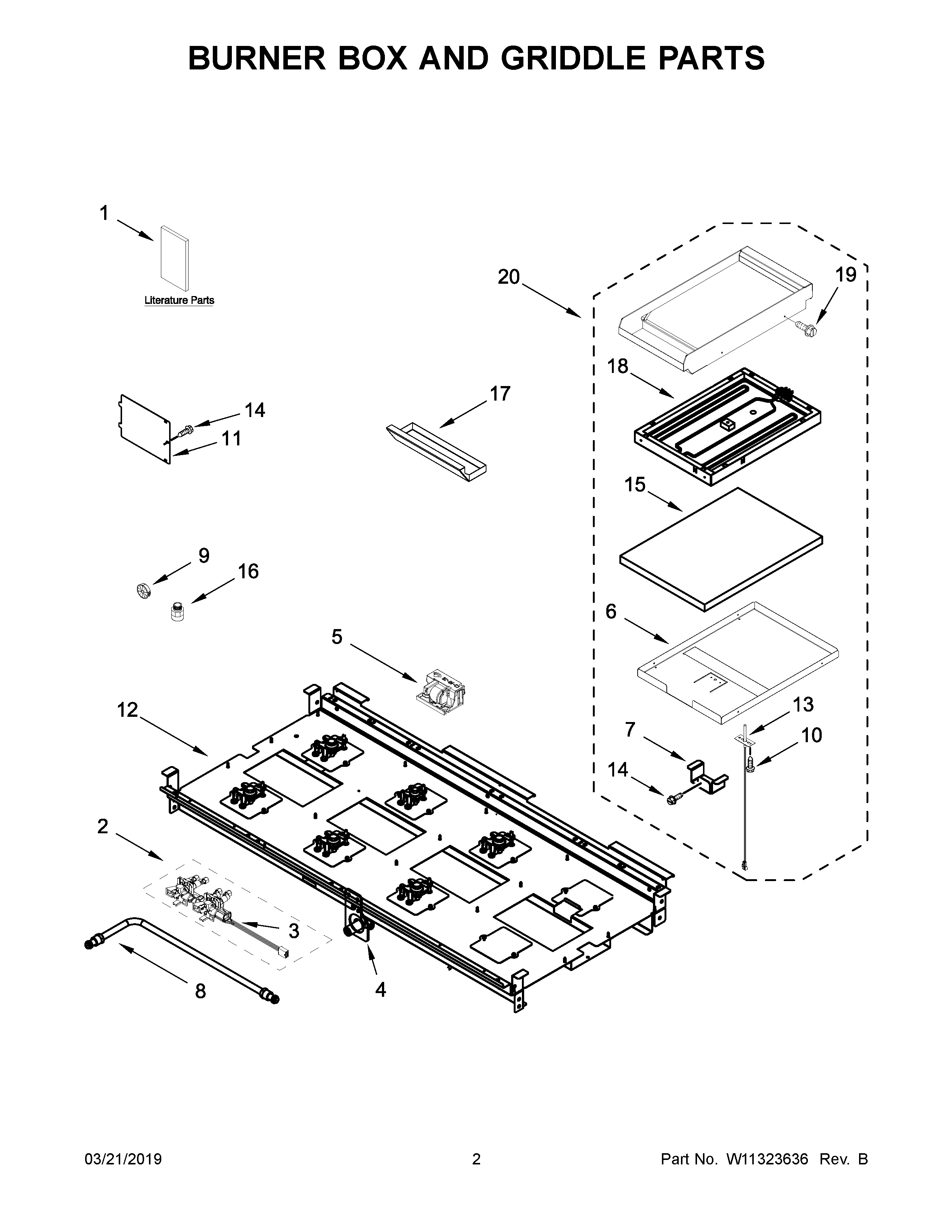 JDRP548HL00 02 – BURNER BOX AND GRIDDLE PARTS