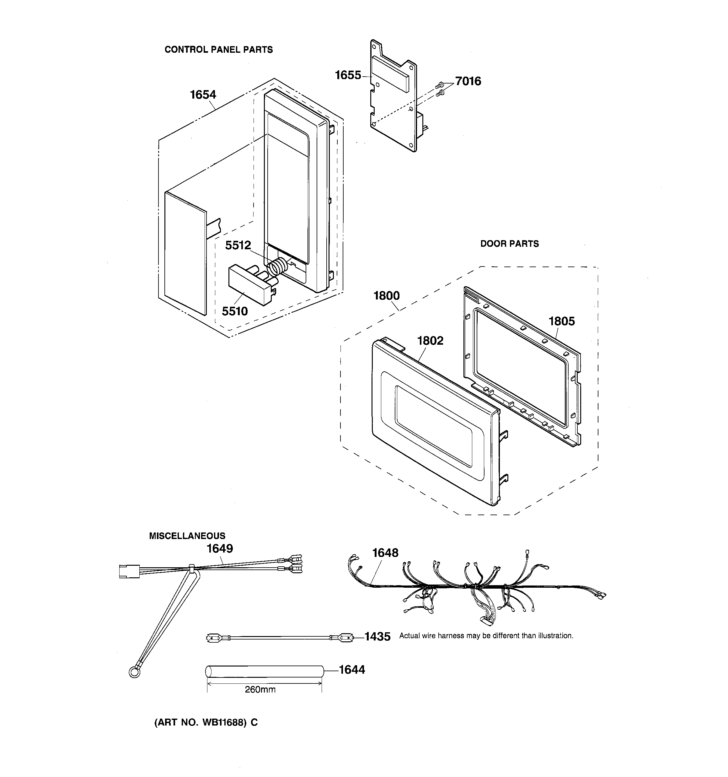 JE1240GW02 CONTROLS PANEL, DOOR & WIRING