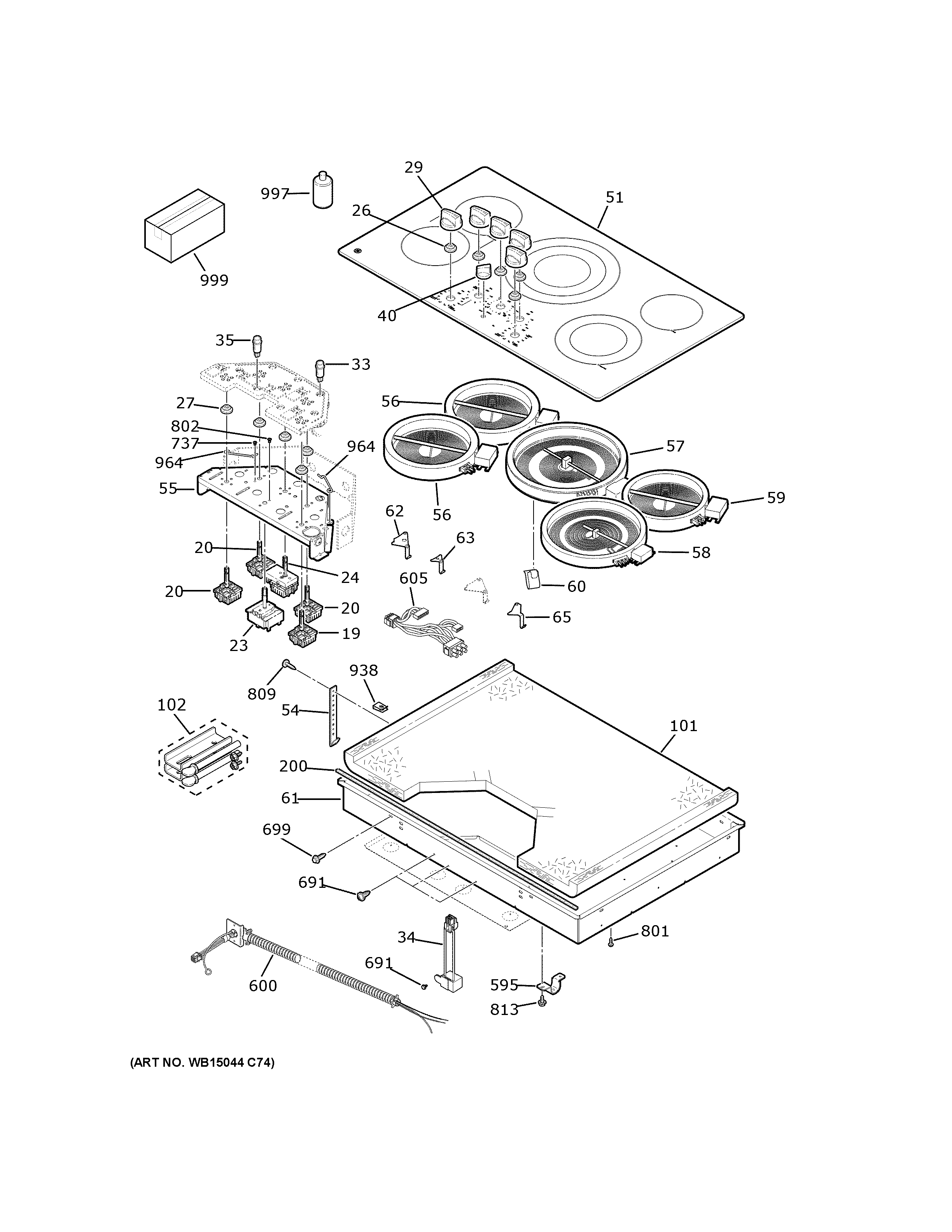 JEP5036ST1SS CONTROL PANEL & COOKTOP