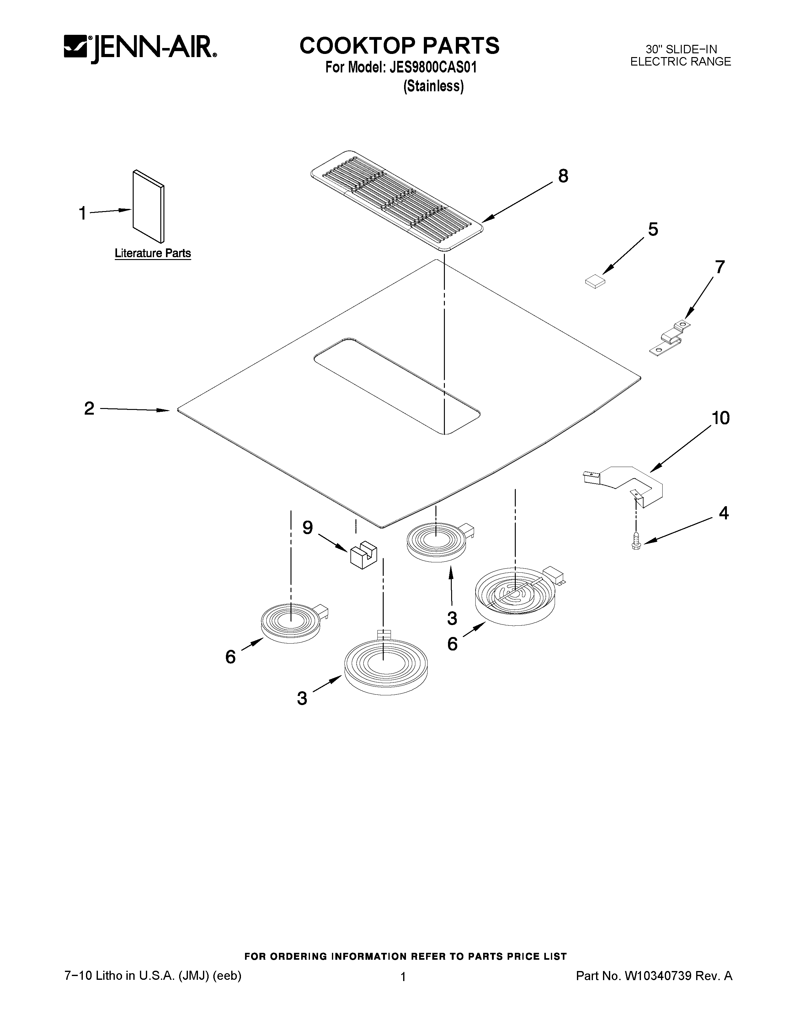 JES9800CAS01 01 – COOKTOP PARTS