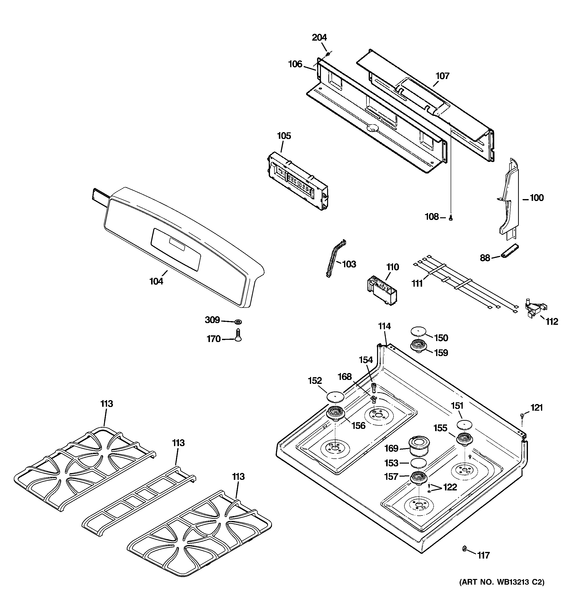 JGB905SEF3SS CONTROL PANEL & COOKTOP