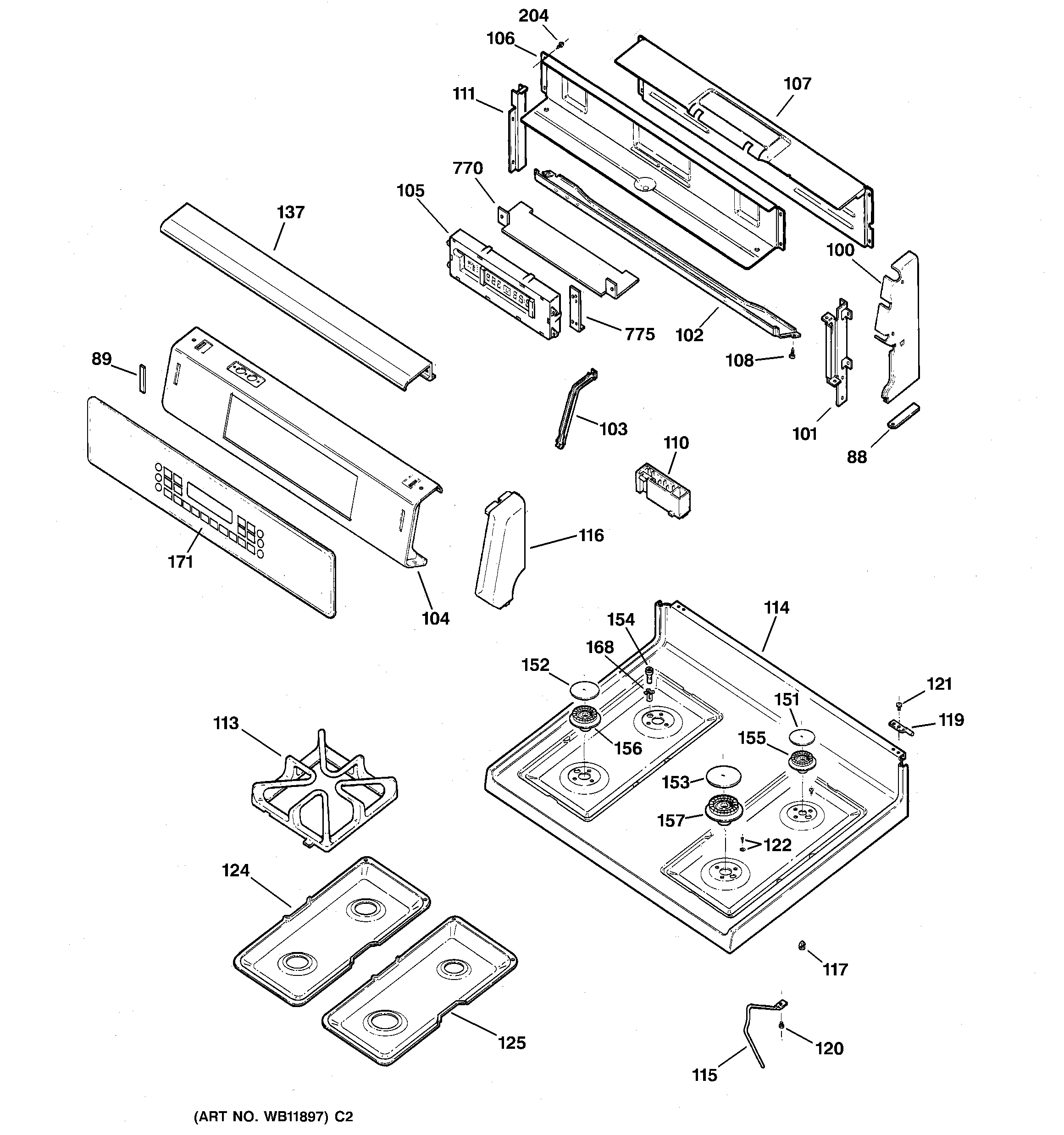 JGB910SEC2SS CONTROL PANEL & COOKTOP