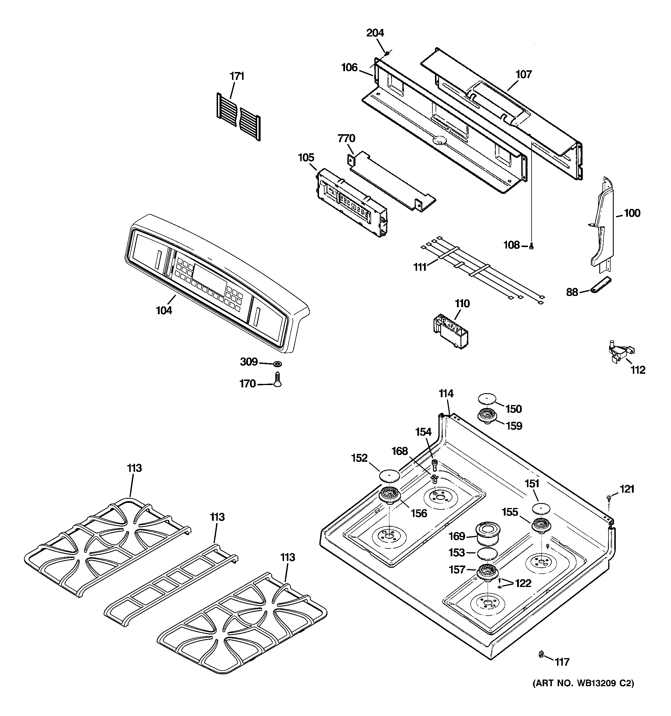 JGB915BEF3BB CONTROL PANEL & COOKTOP