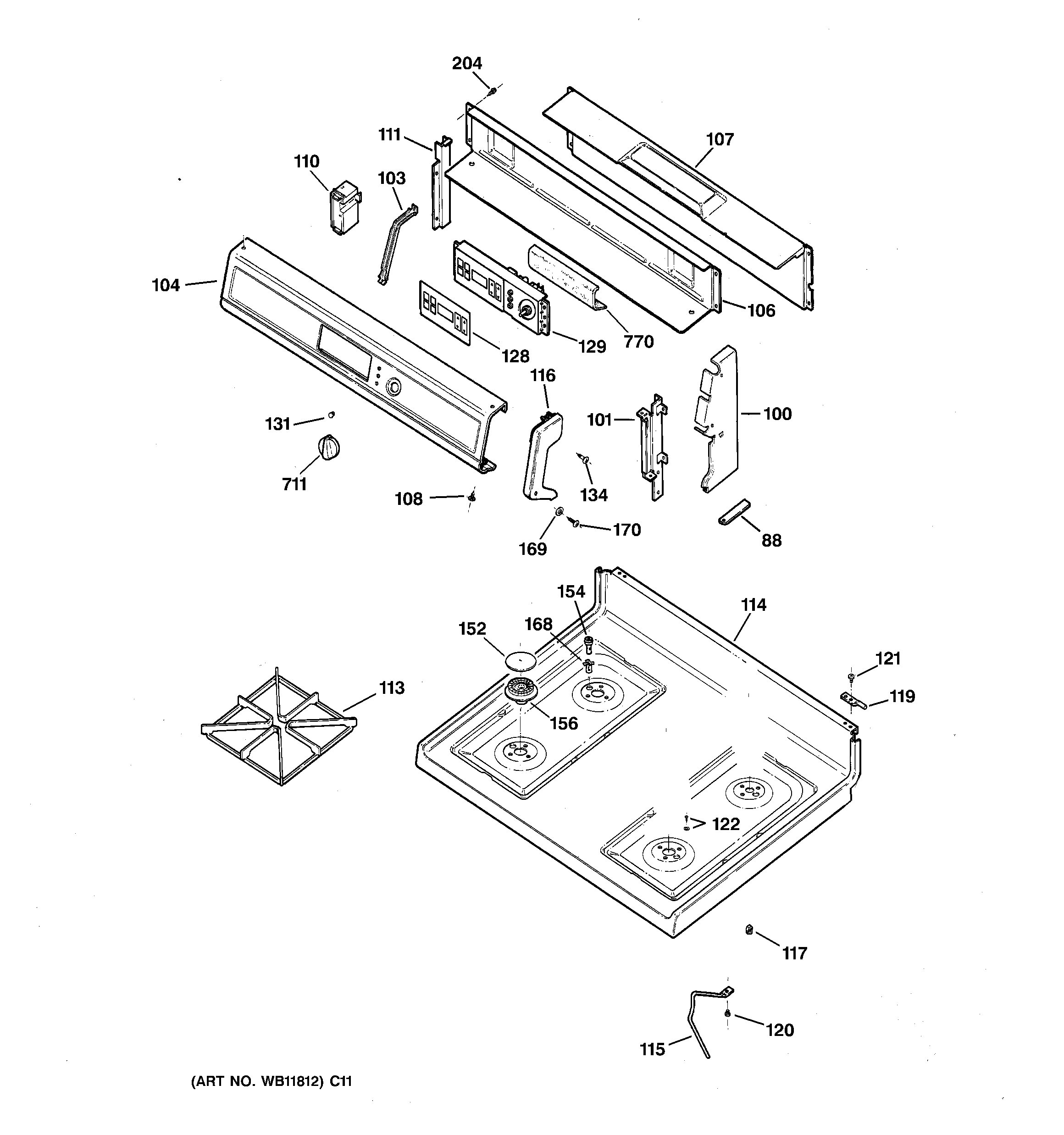 JGBP28BEA5WH CONTROL PANEL & COOKTOP