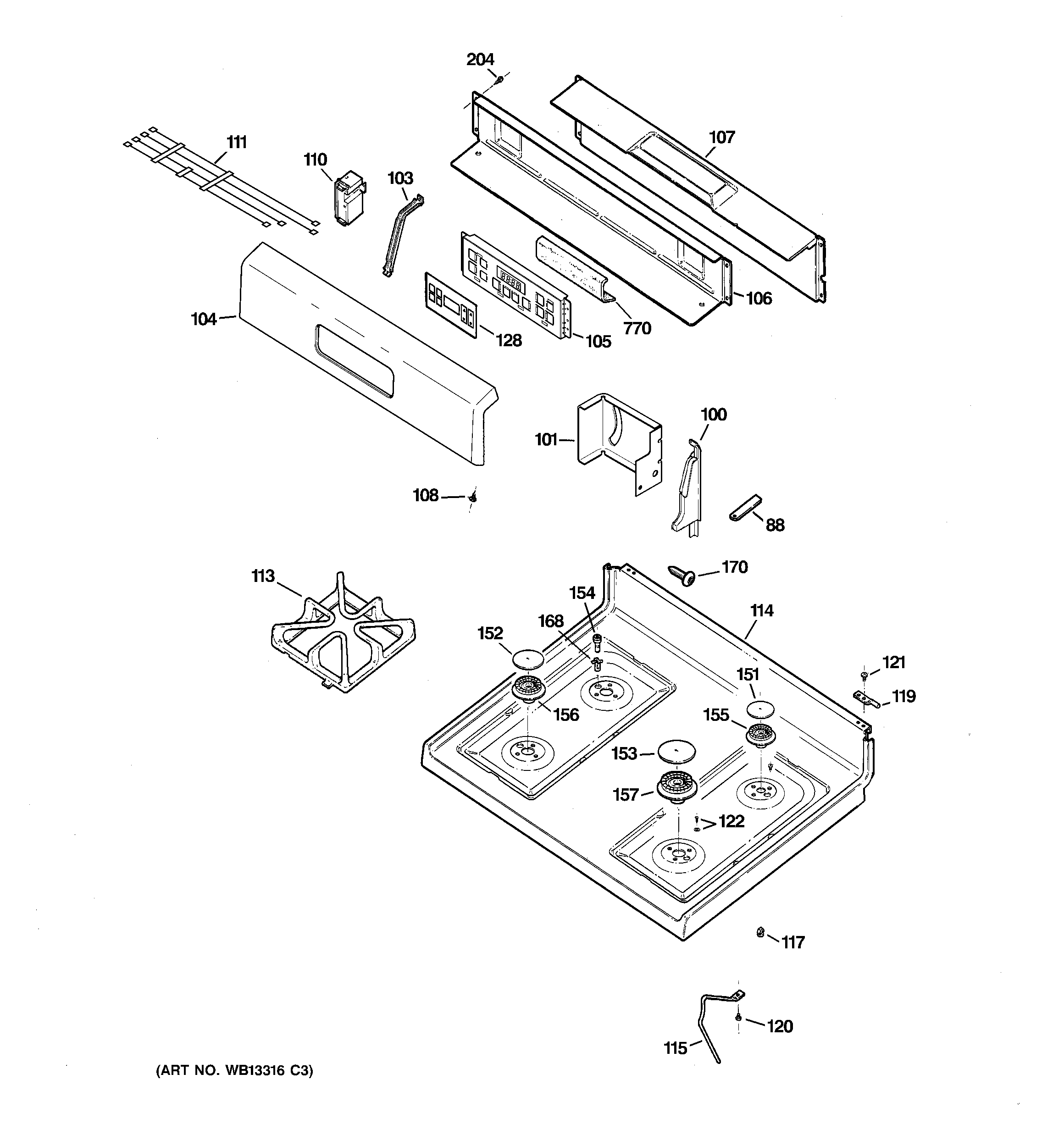 JGBP28MEL1BS CONTROL PANEL & COOKTOP