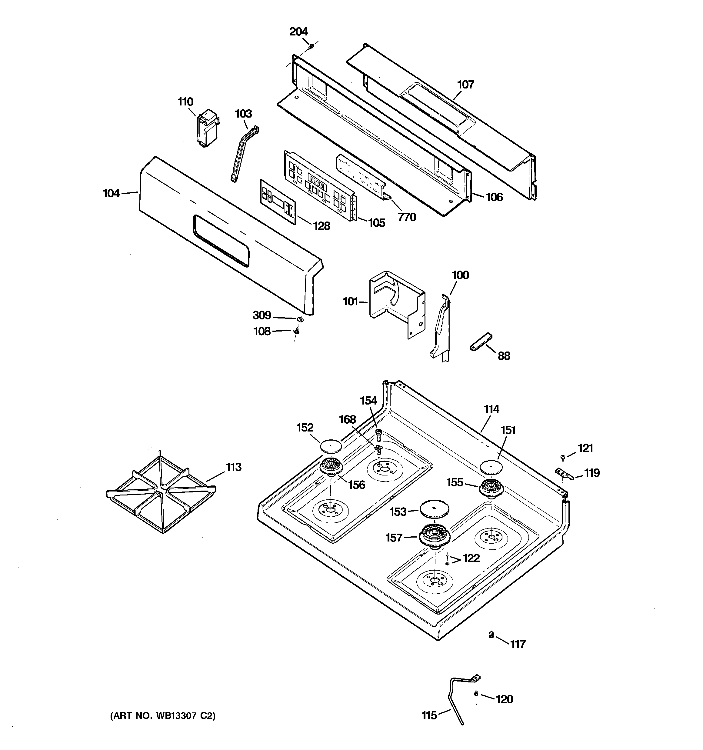 JGBP30BEK1BB CONTROL PANEL & COOKTOP