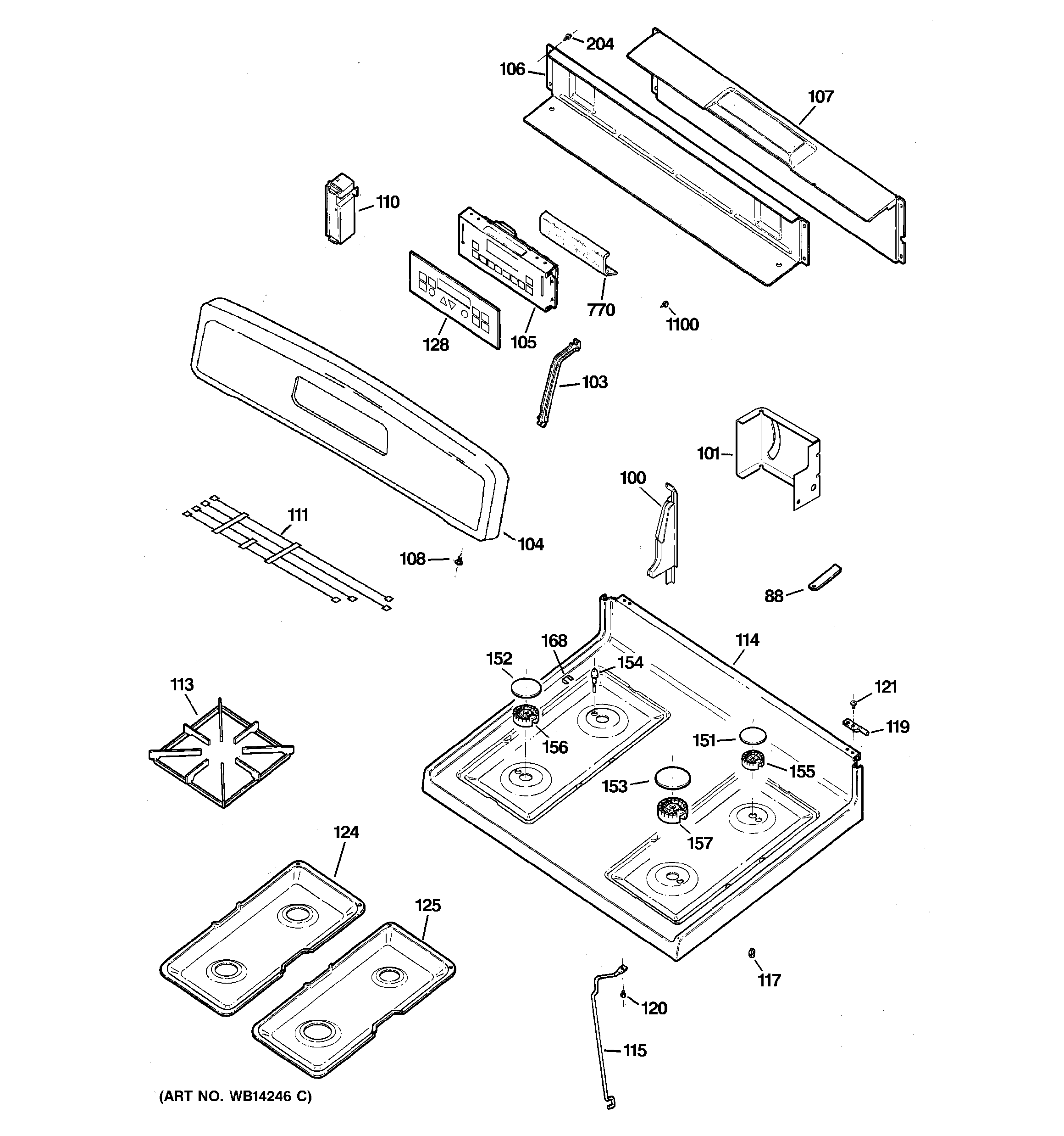 JGBP35GXM1WW CONTROL PANEL & COOKTOP