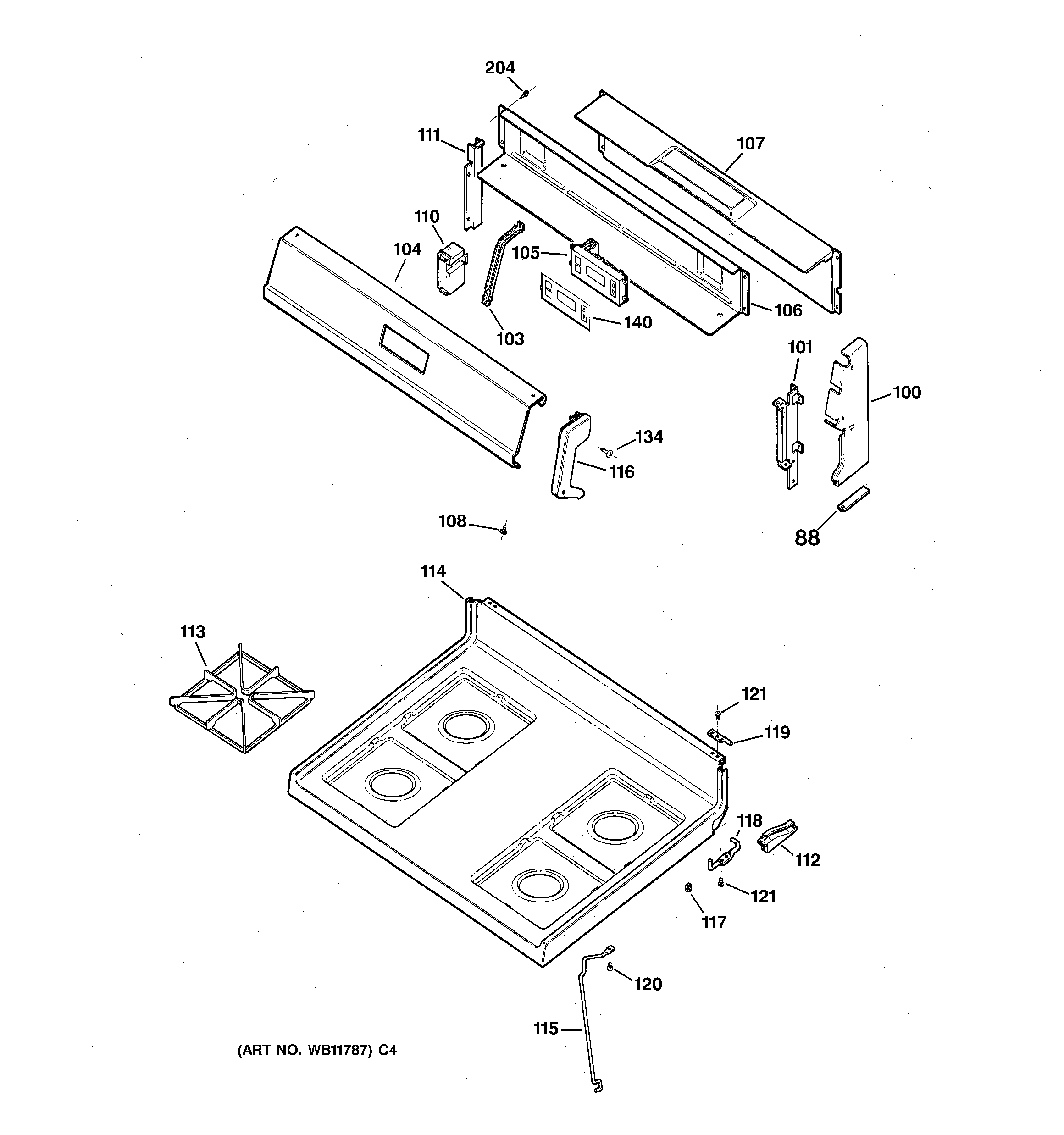114WB62K10003 GE Oven Cooktop Assembly (White)