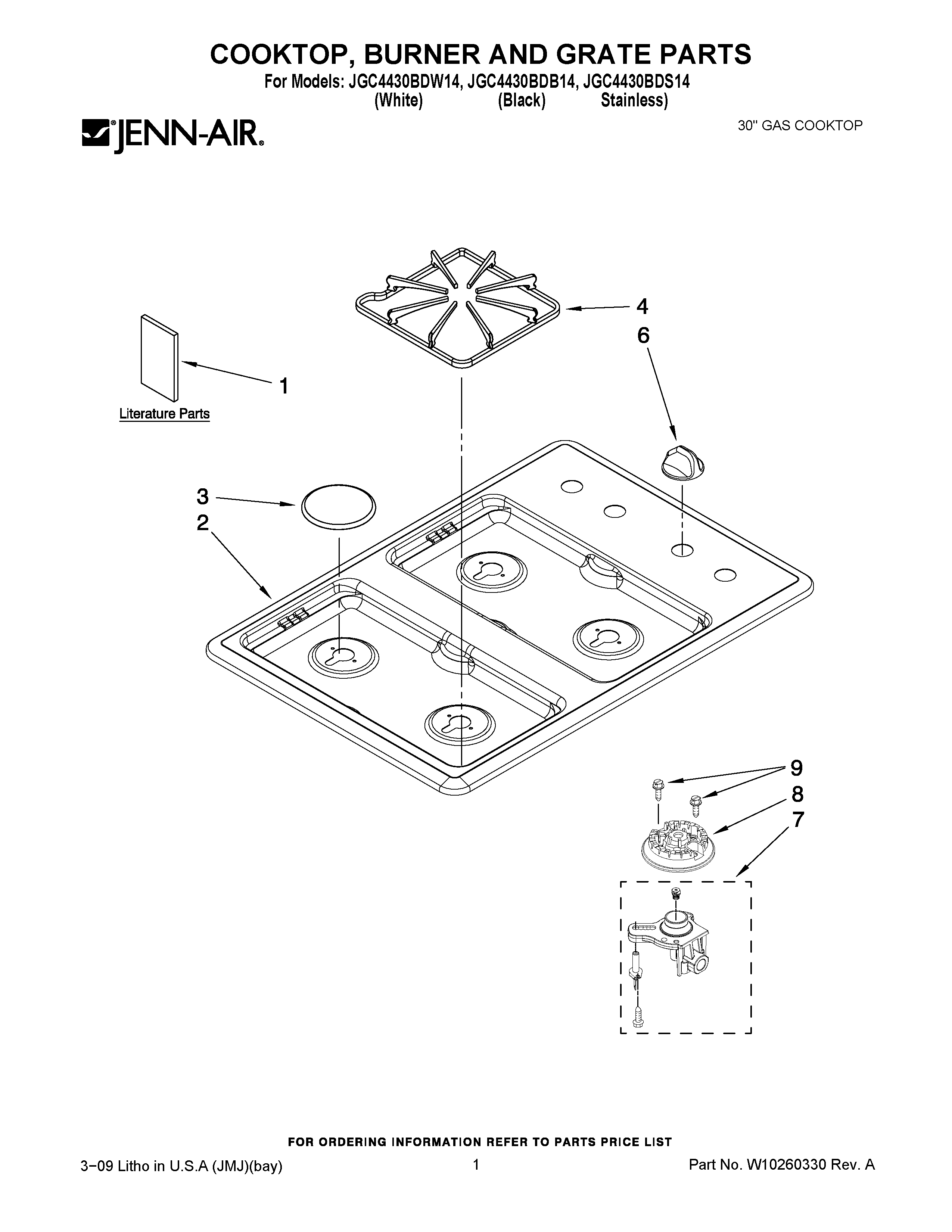 JGC4430BDW14 01 – COOKTOP, BURNER AND GRATE PARTS