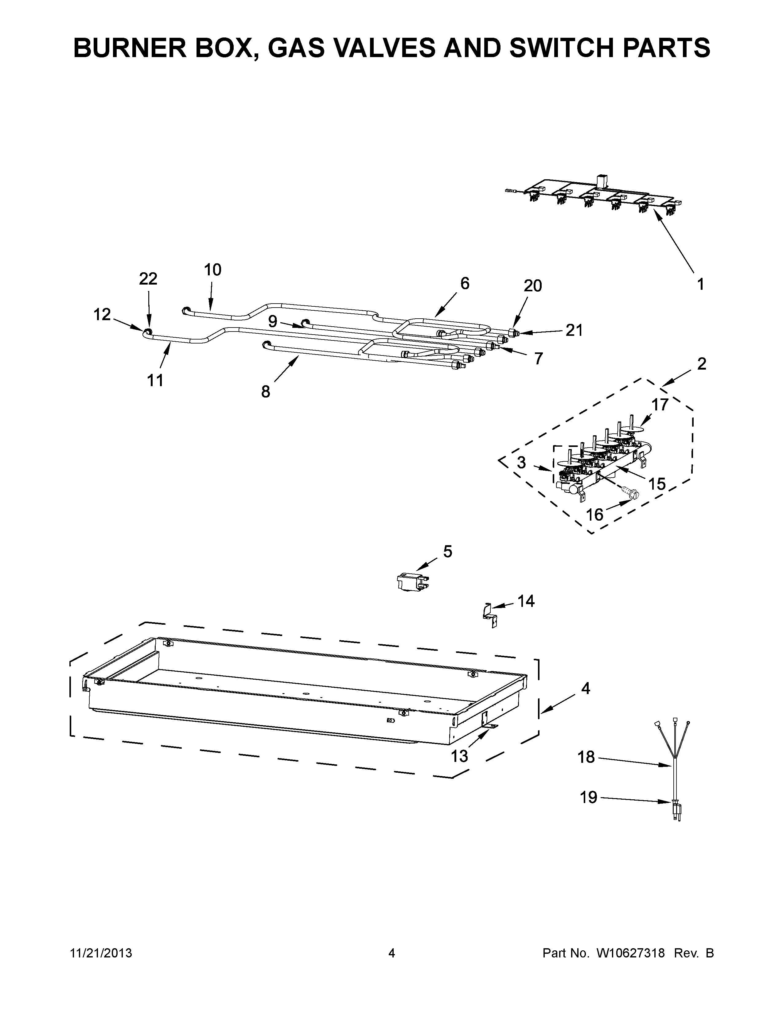 JGC7636BS0 03 – BURNER BOX, GAS VALVES AND SWITCH PARTS