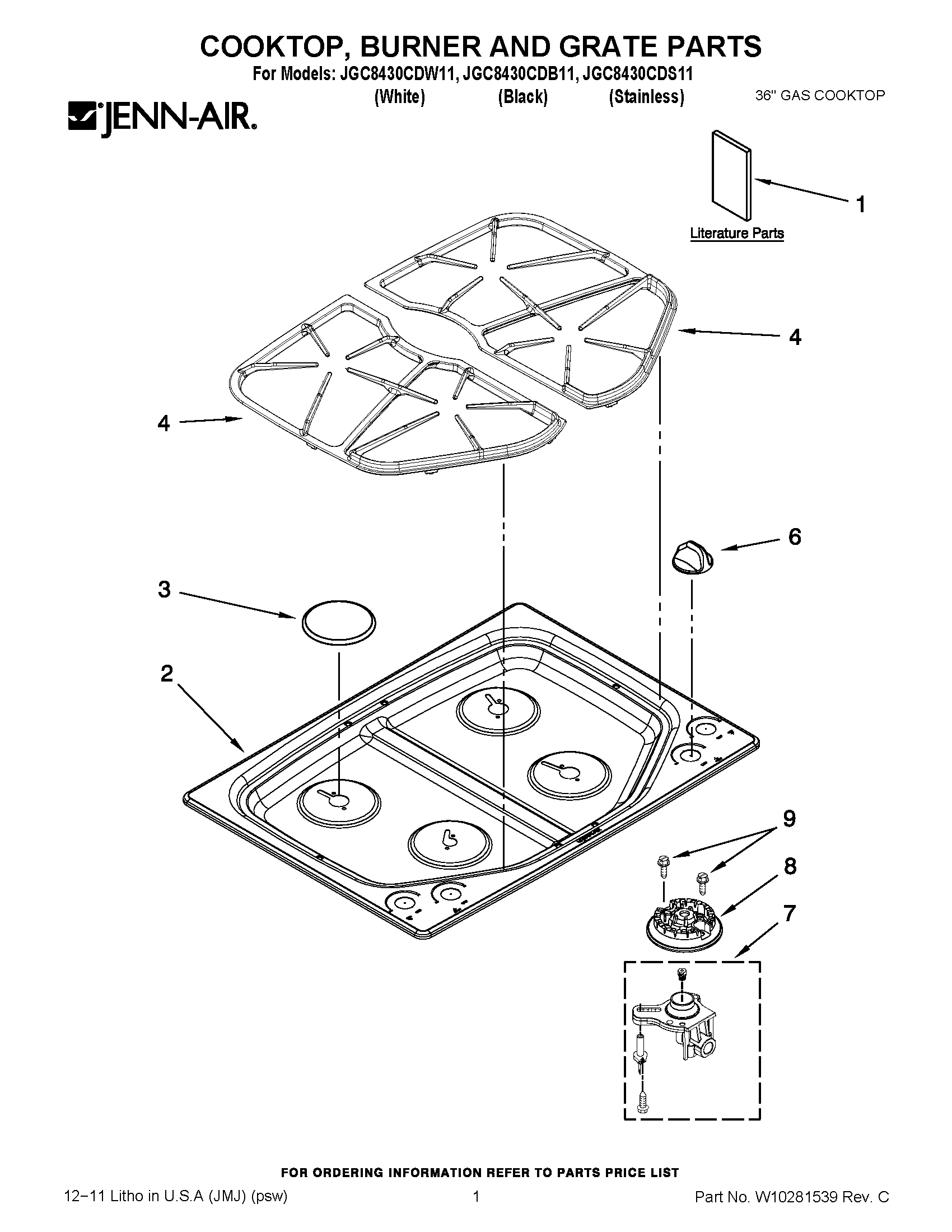 JGC8430CDS11 01 – COOKTOP, BURNER AND GRATE PARTS