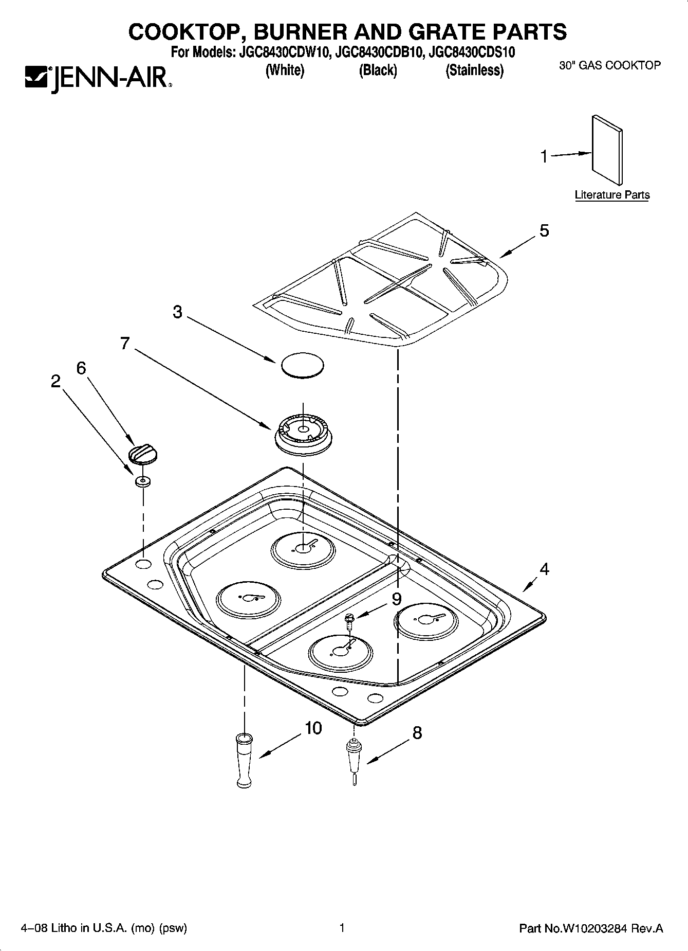JGC8430CDW10 01 – COOKTOP, BURNER AND GRATE PARTS
