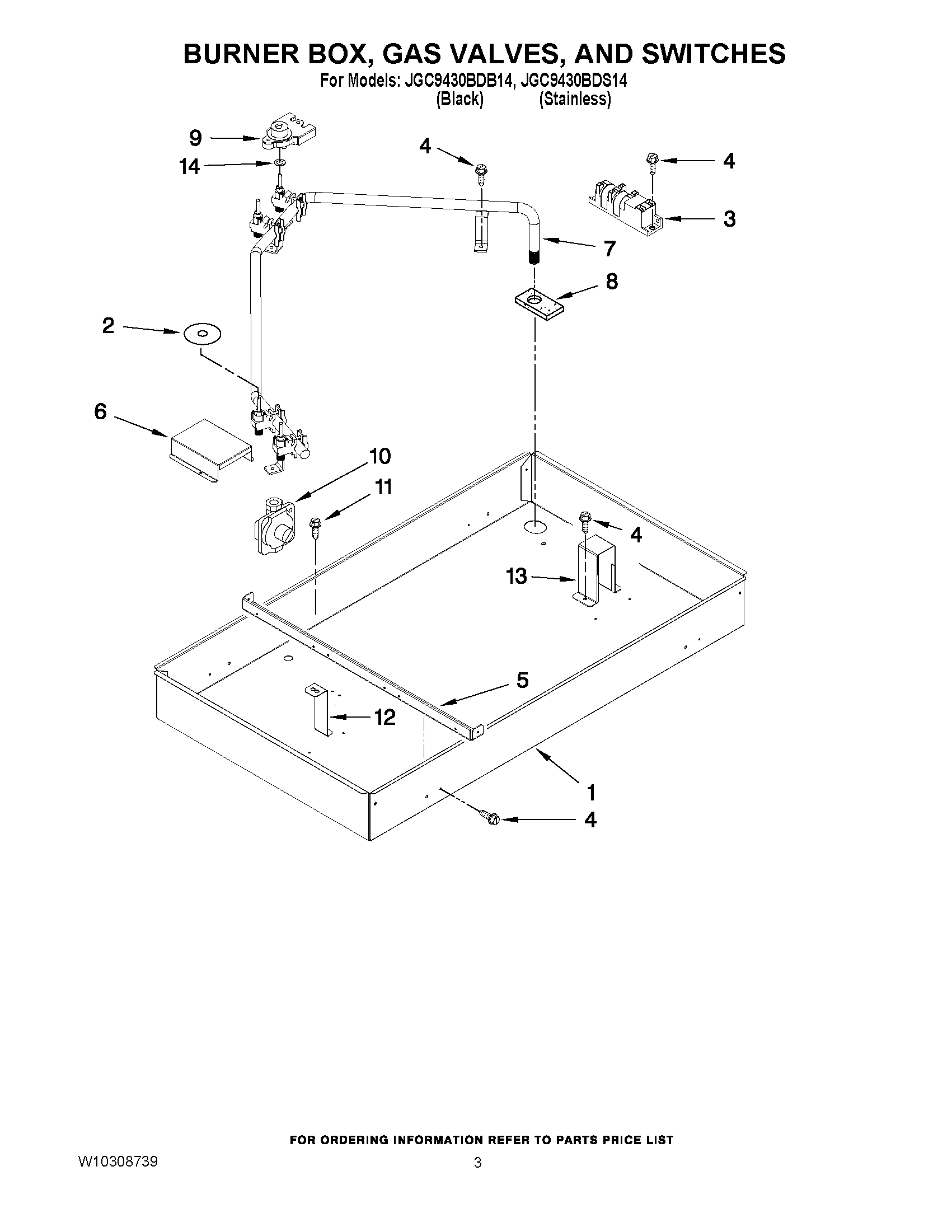 JGC9430BDB14 02 – BURNER BOX, GAS VALVES, AND SWITCHES