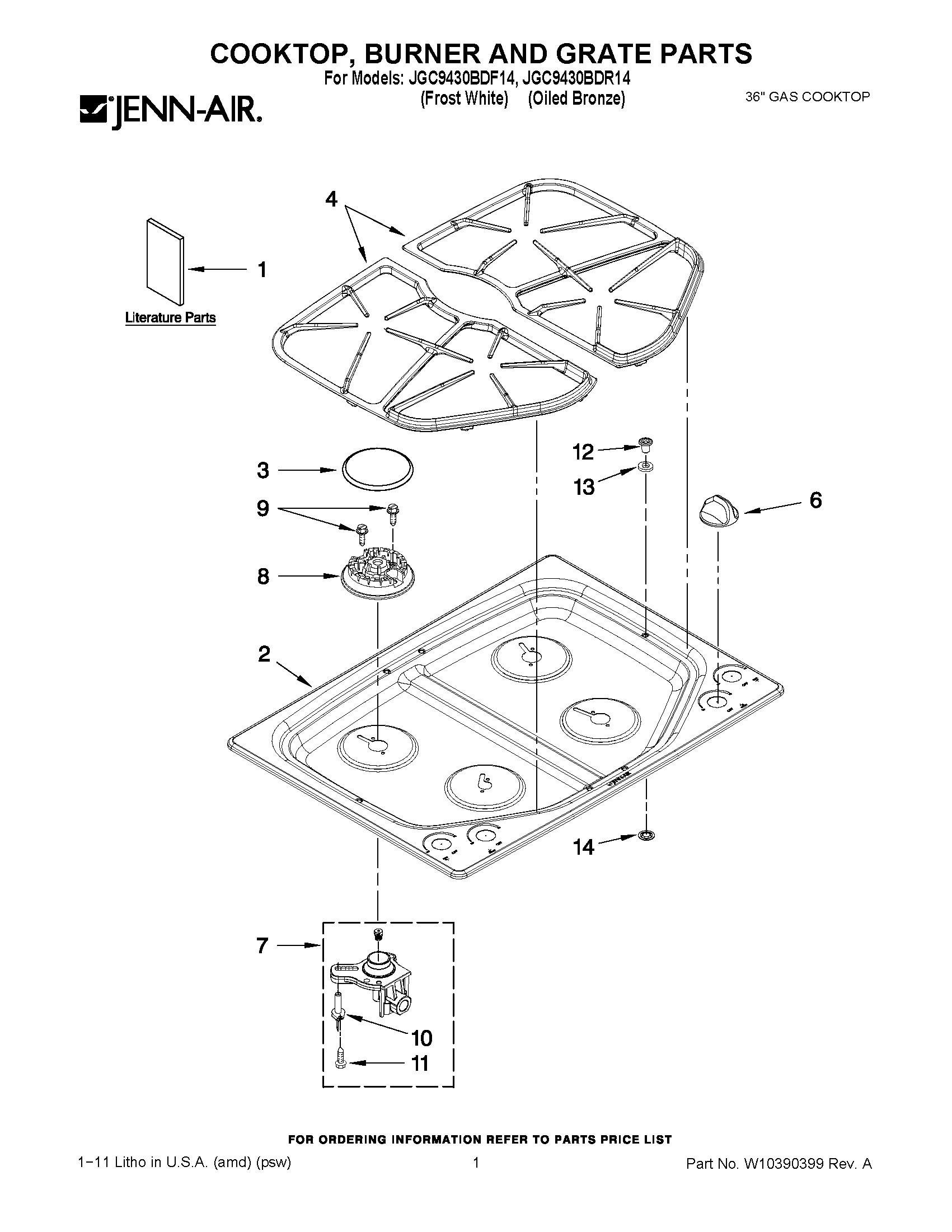 JGC9430BDF14 01 – COOKTOP, BURNER AND GRATE PARTS
