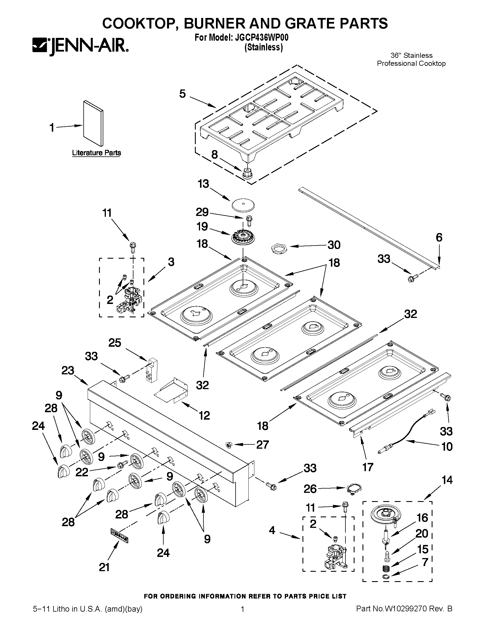 JGCP436WP00 01 – COOKTOP, BURNER AND GRATE PARTS