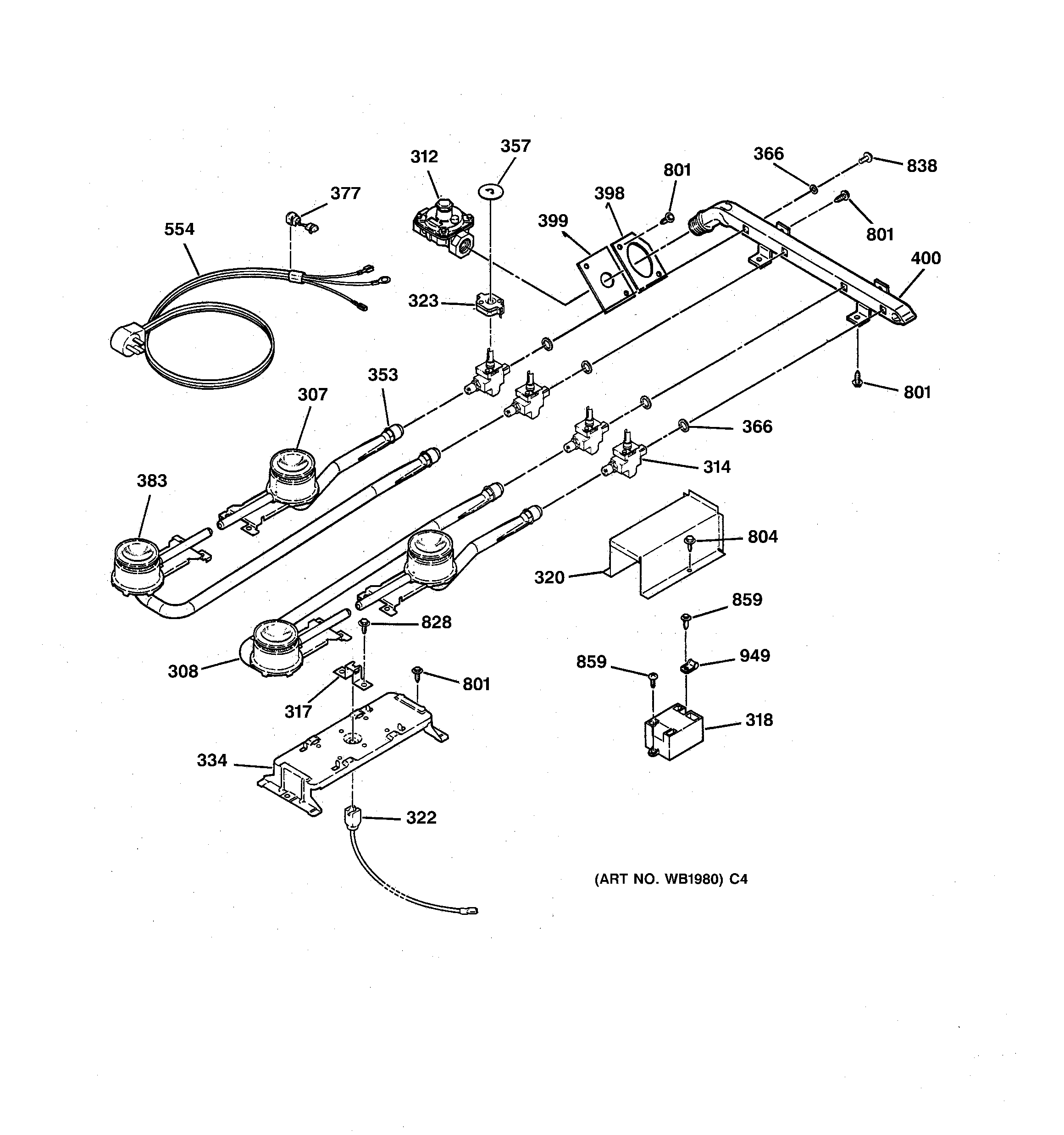 JGP320EP3WH GAS & BURNER PARTS