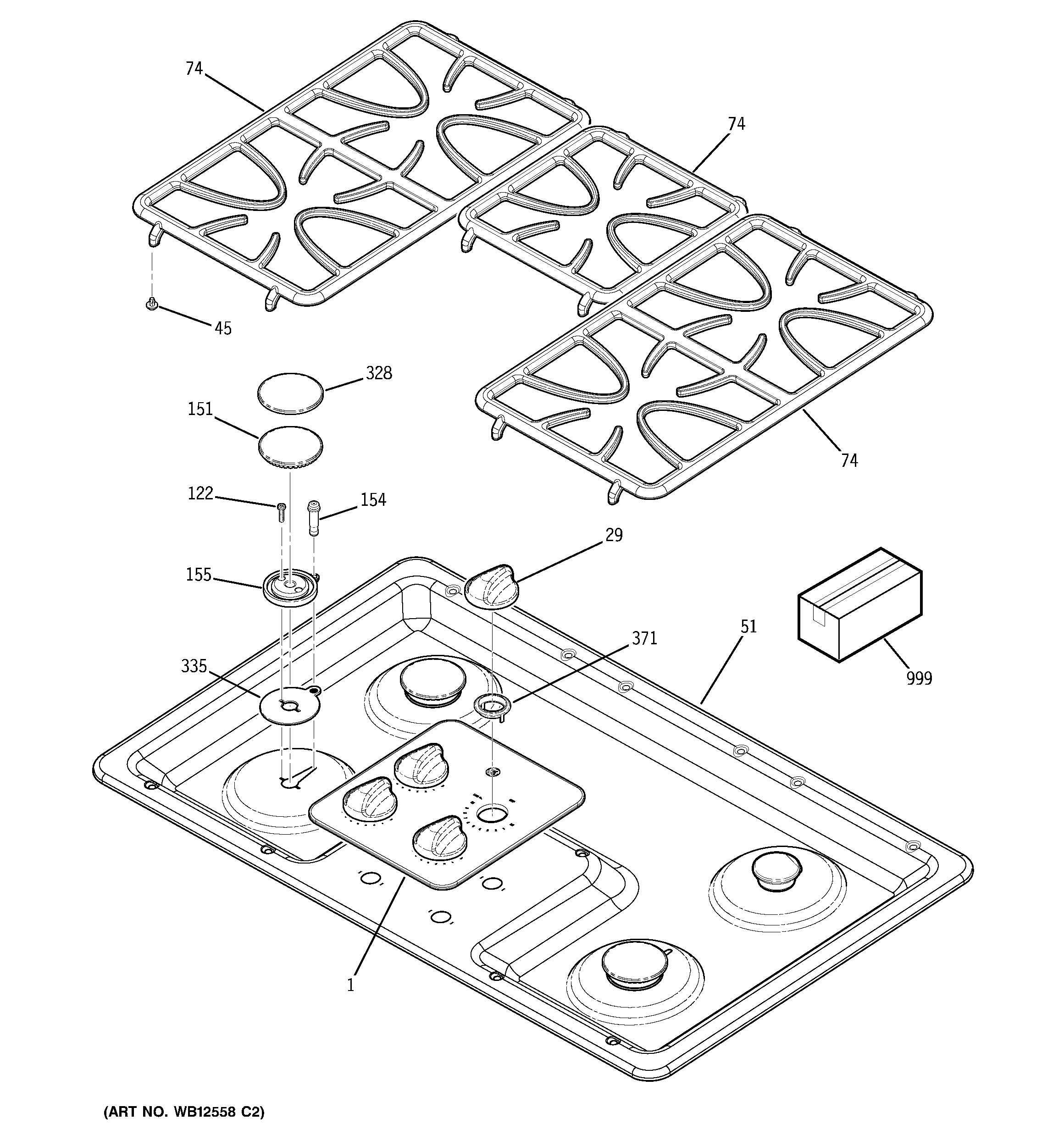 JGP628WEC2WW CONTROL PANEL & COOKTOP