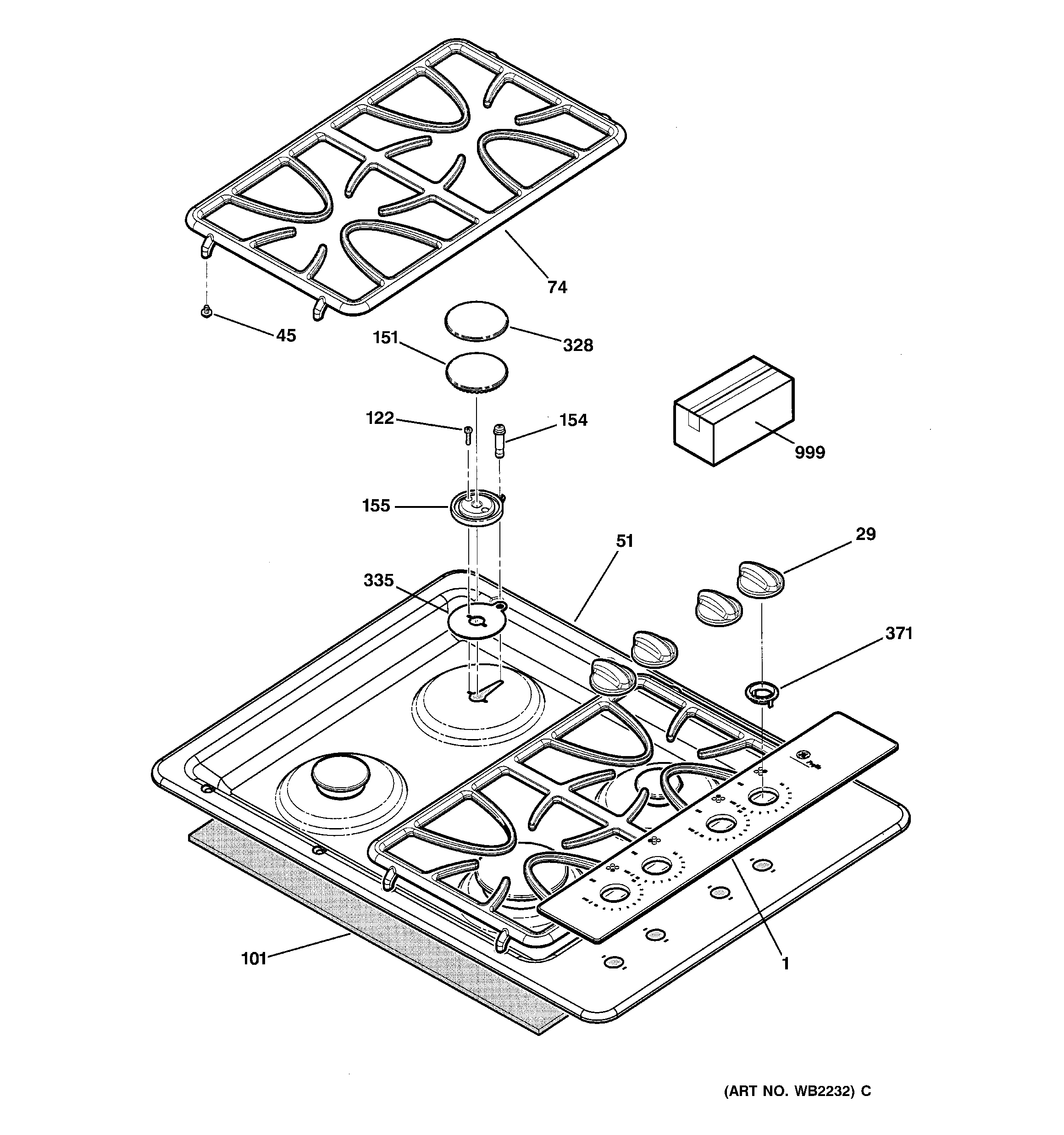 JGP970BEK2BB CONTROL PANEL & COOKTOP