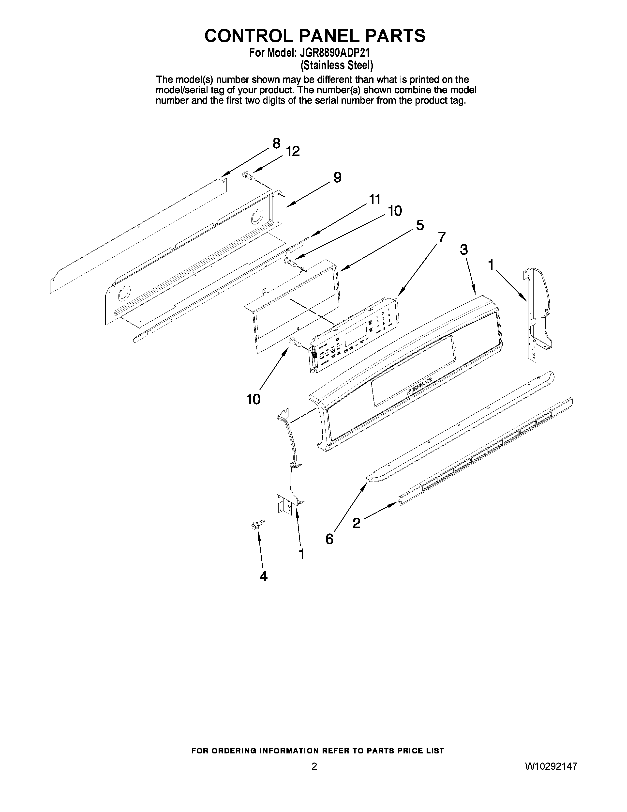 JGR8890ADP21 02 – CONTROL PANEL PARTS