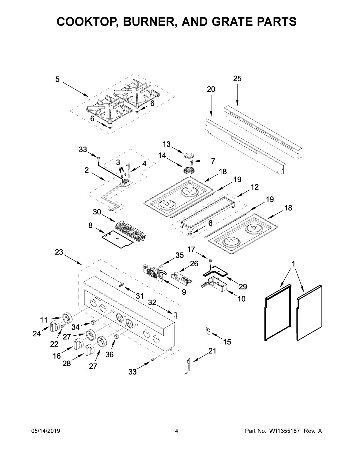 JGRP430HL00 03 – COOKTOP, BURNER, AND GRATE PARTS