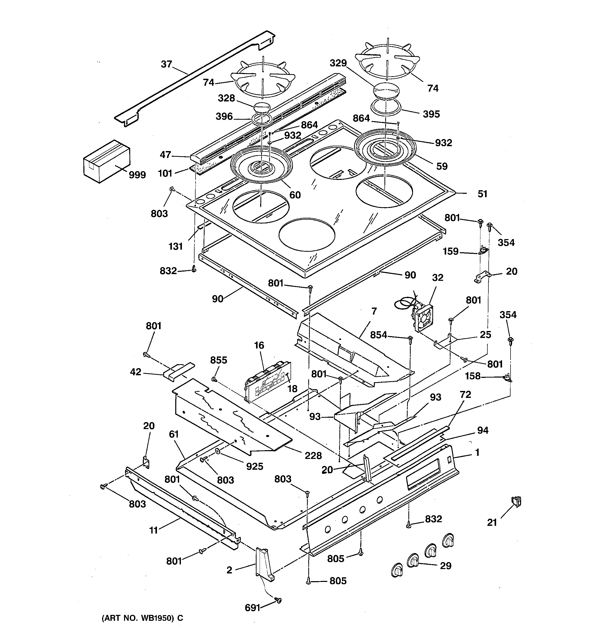 JGSP31WET1WW CONTROL PANEL & COOKTOP