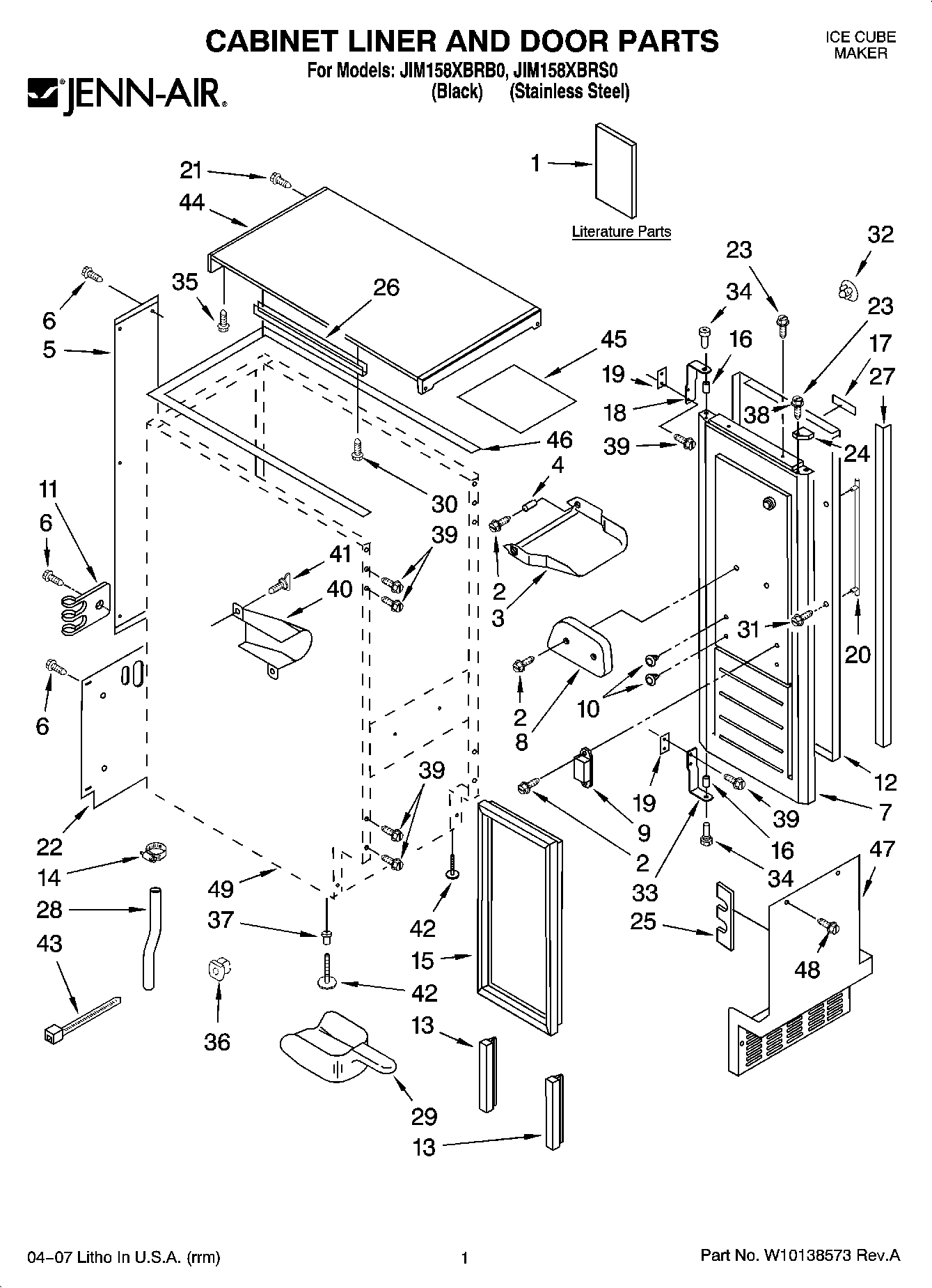 JIM158XBRB0 01 – CABINET LINER AND DOOR PARTS