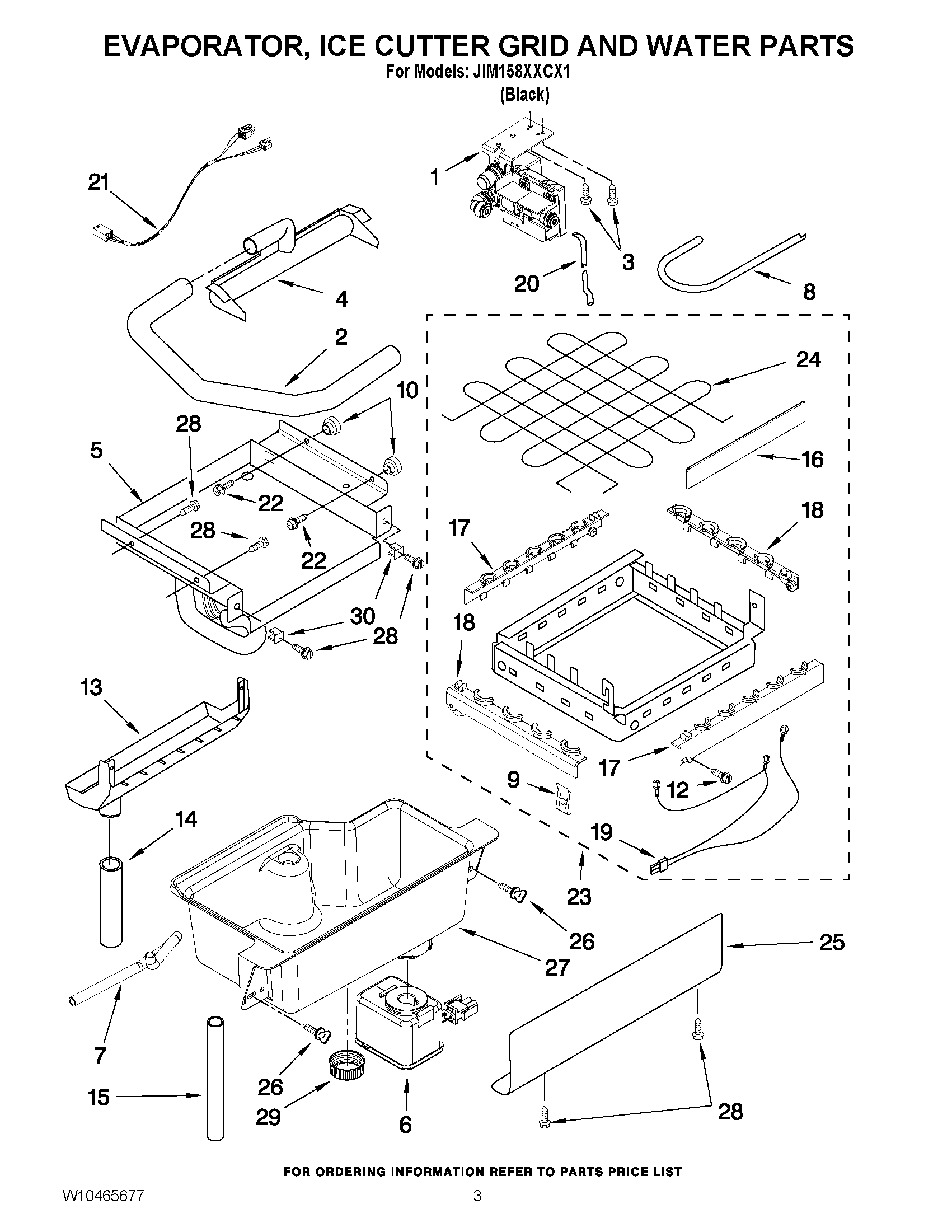 JIM158XXCX1 02 – EVAPORATOR, ICE CUTTER GRID AND WATER PARTS