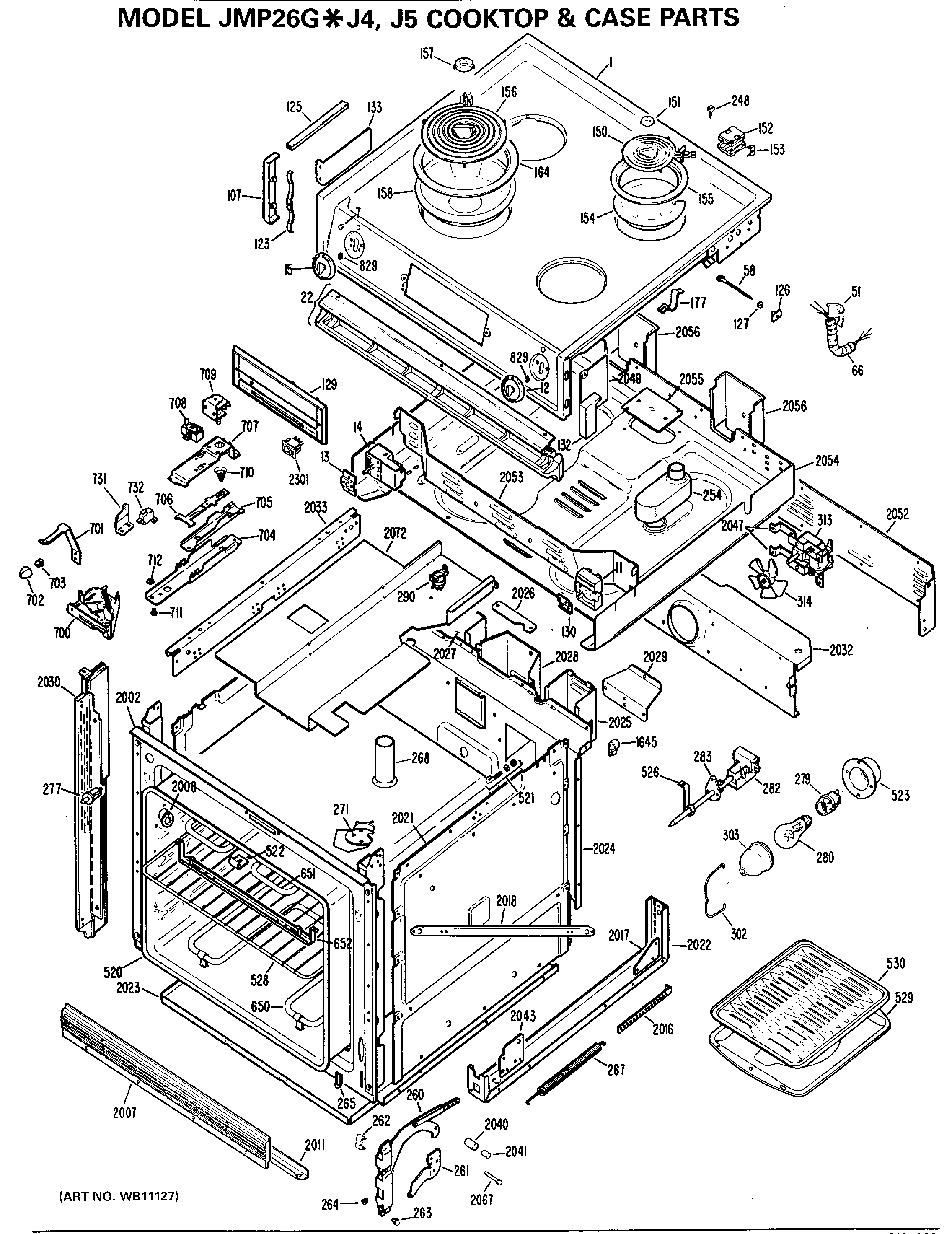 JMP26G*J5 COOKTOP & CASE PARTS