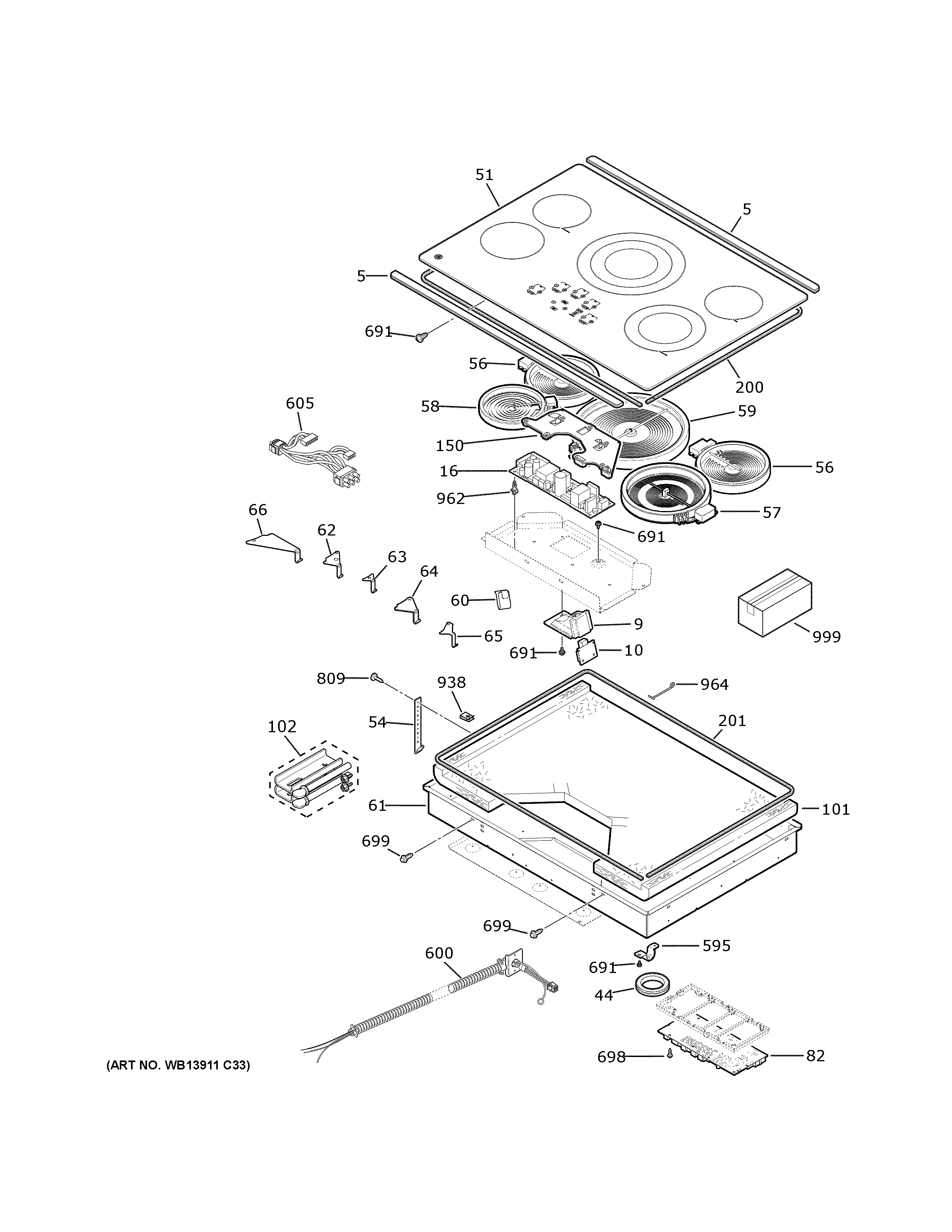 JP5036SJ1SS CONTROL PANEL & COOKTOP