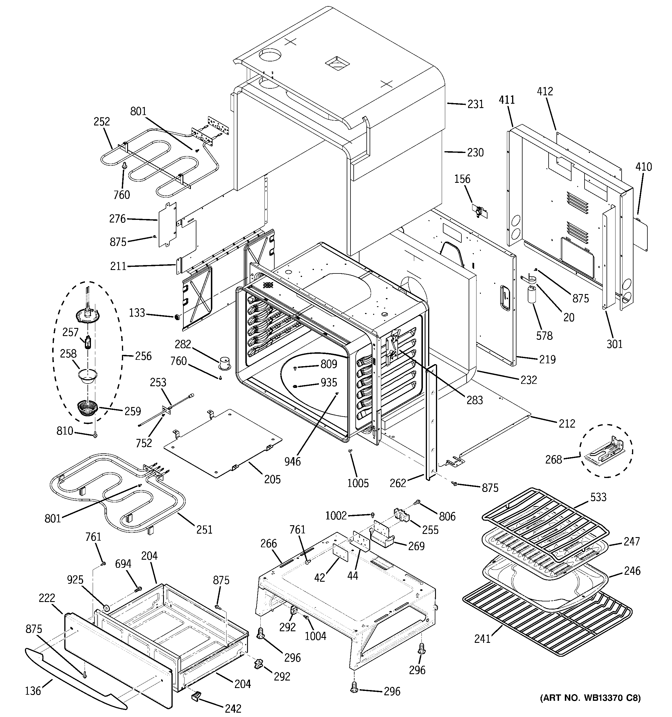 WB55T10178 GE Oven Mechanical Drawer Body Assembly