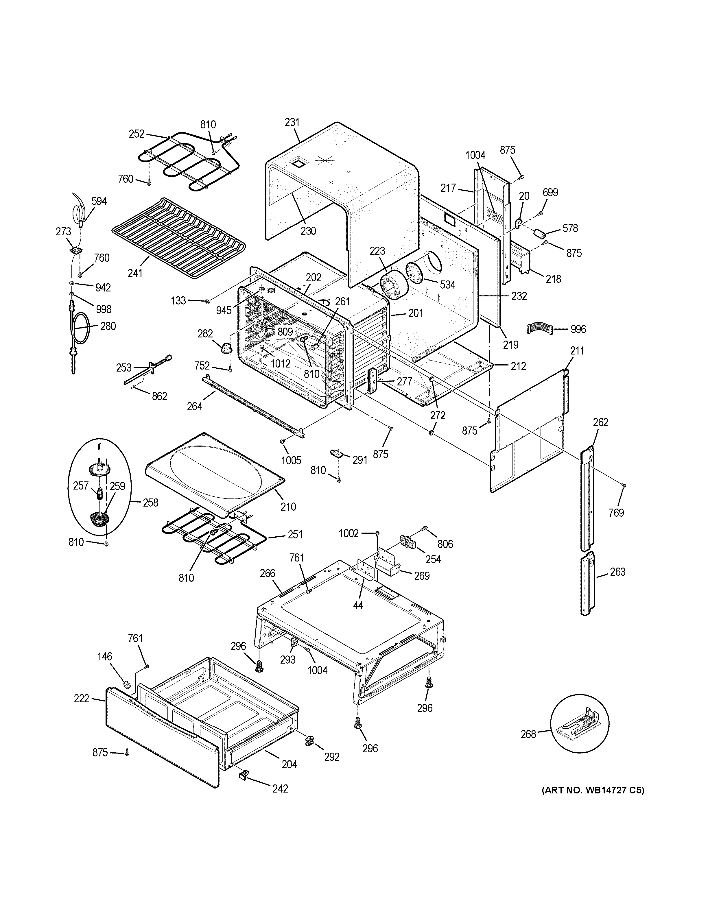 | 204 | WB55T10180 GE Oven Drawer Body Assembly |