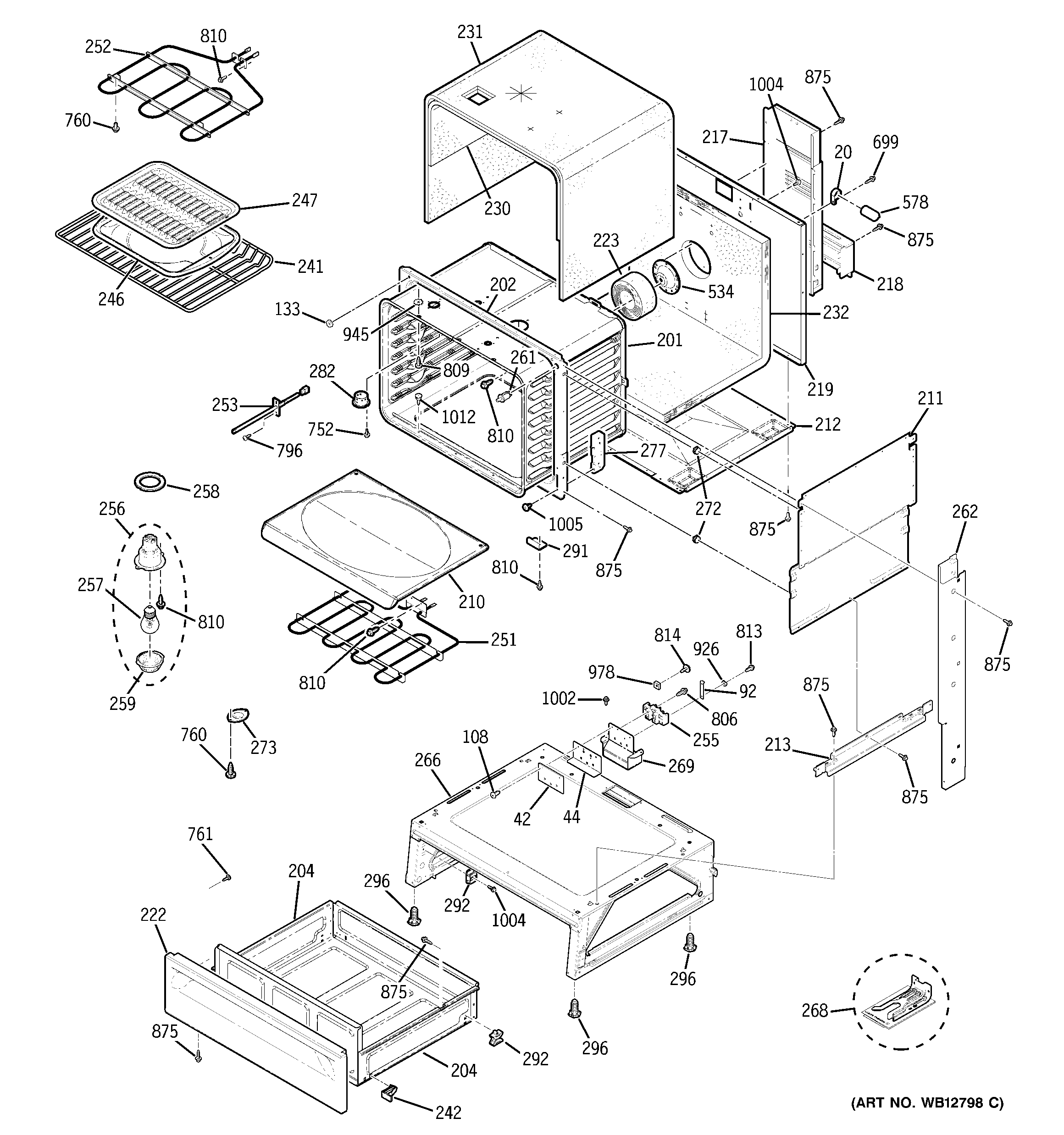 WB55T10178 GE Oven Mechanical Drawer Body Assembly