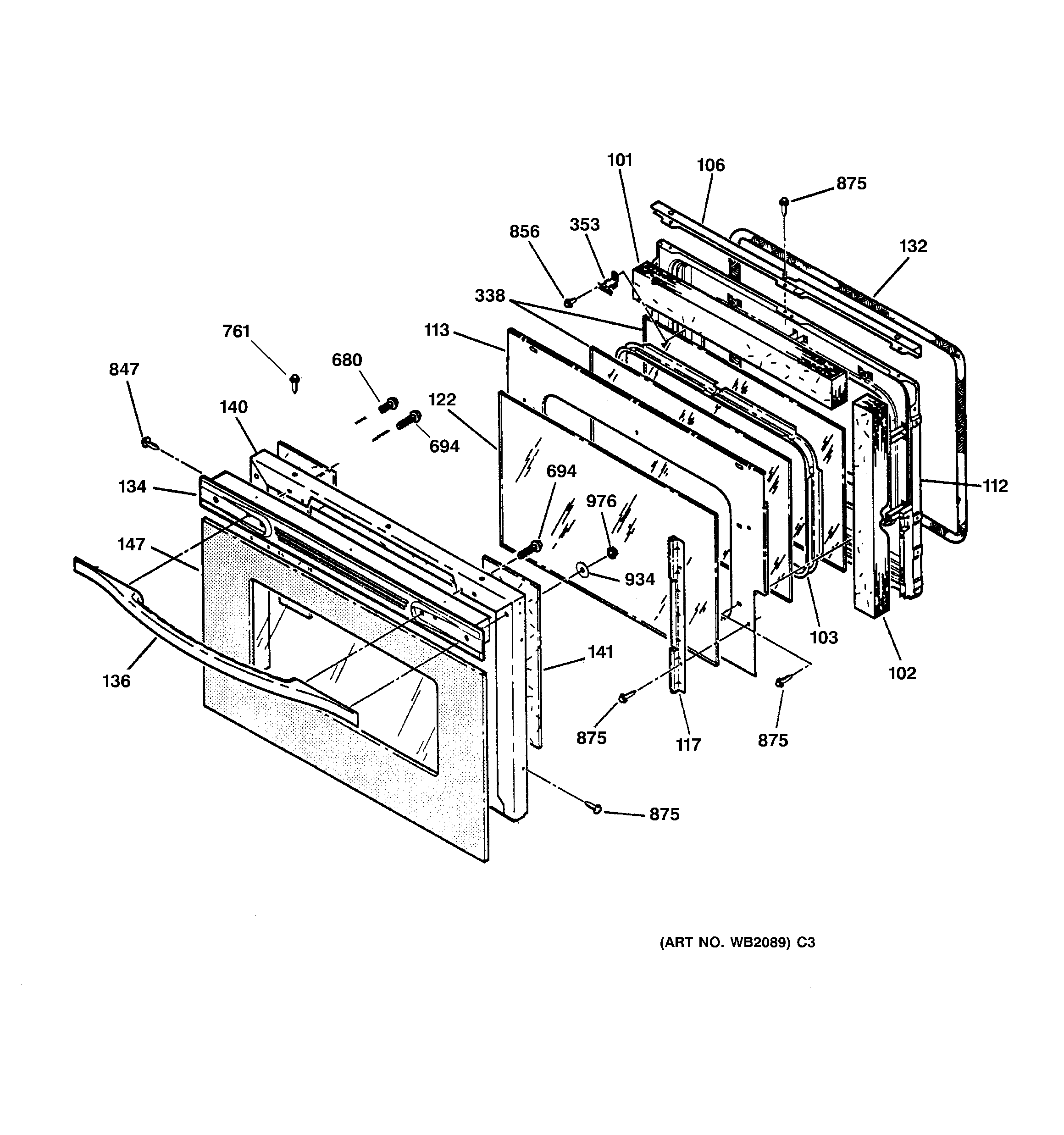 WB35T10002 GE Oven Door In