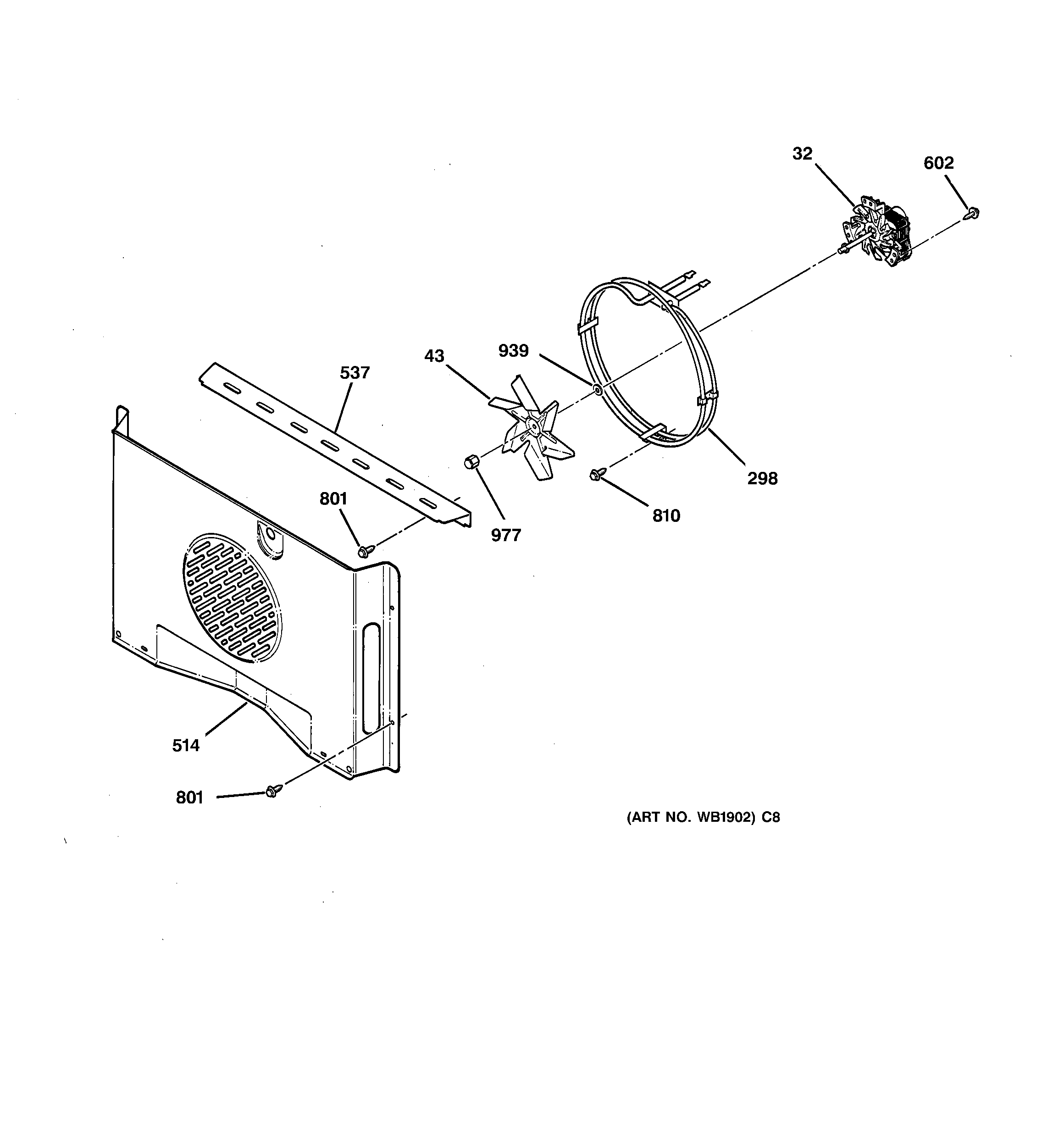 WB26K5061 GE Oven Upper Fan Assembly