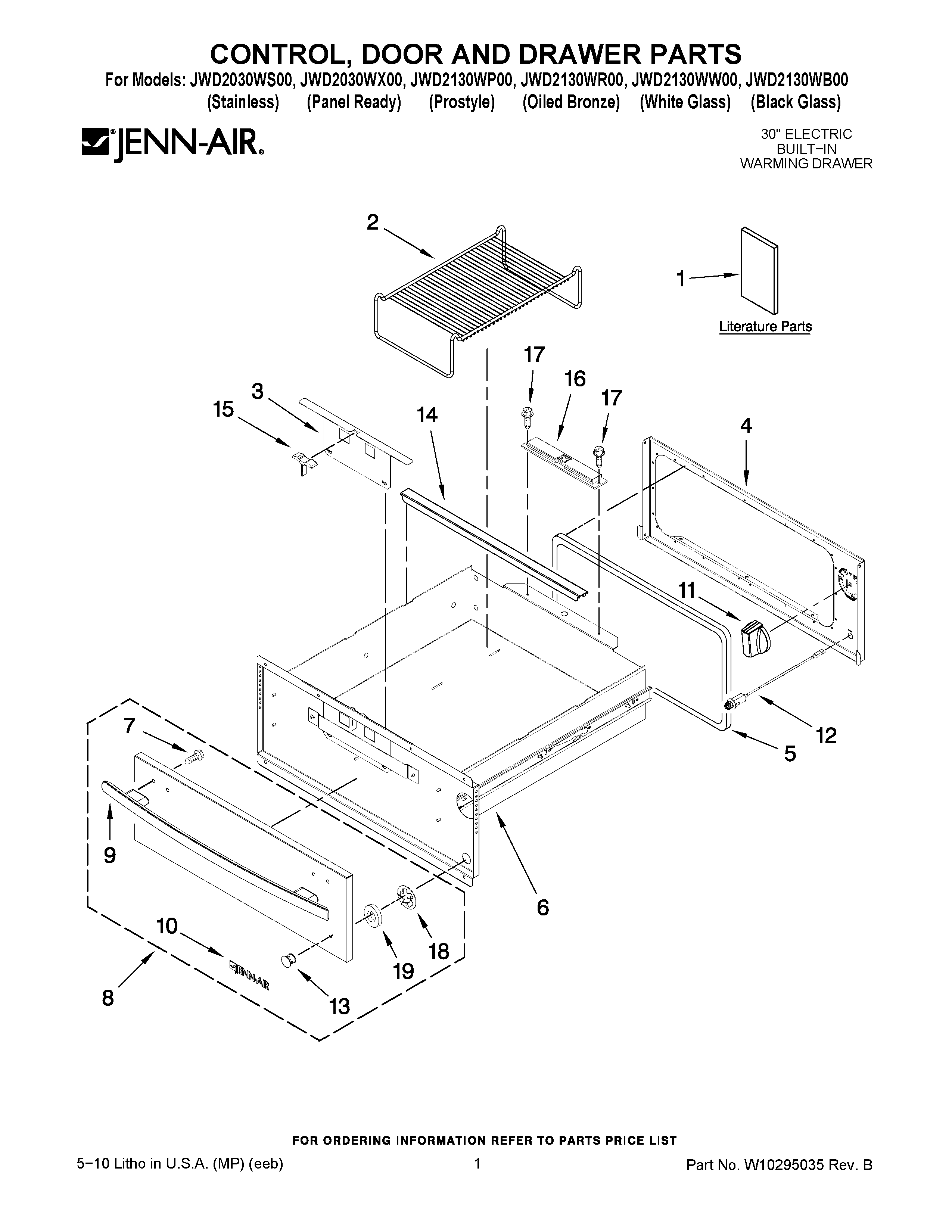 JWD2130WB00 01 – CONTROL, DOOR AND DRAWER PARTS