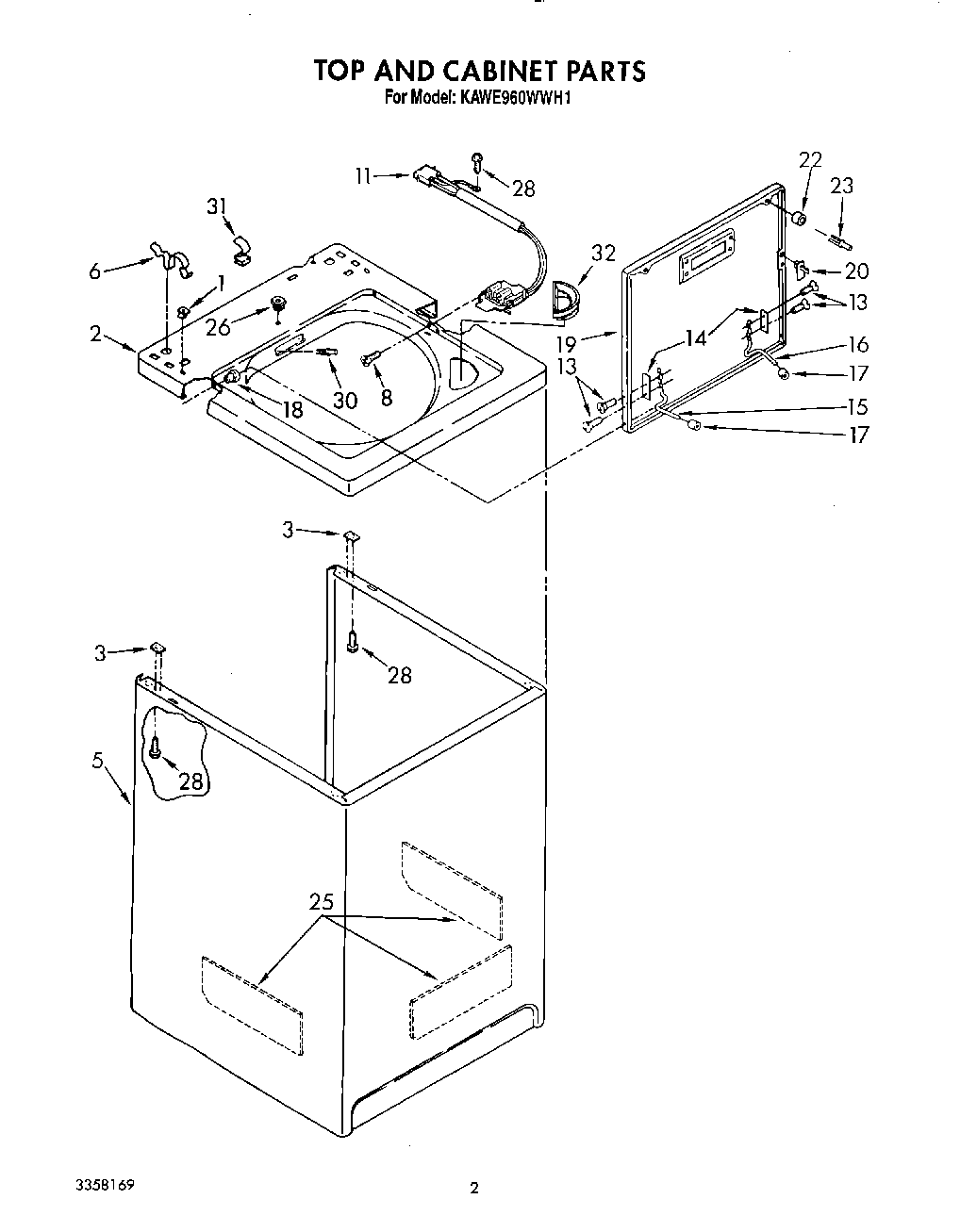 KAWE960WWH1 02 – TOP AND CABINET, LIT/OPTIONAL