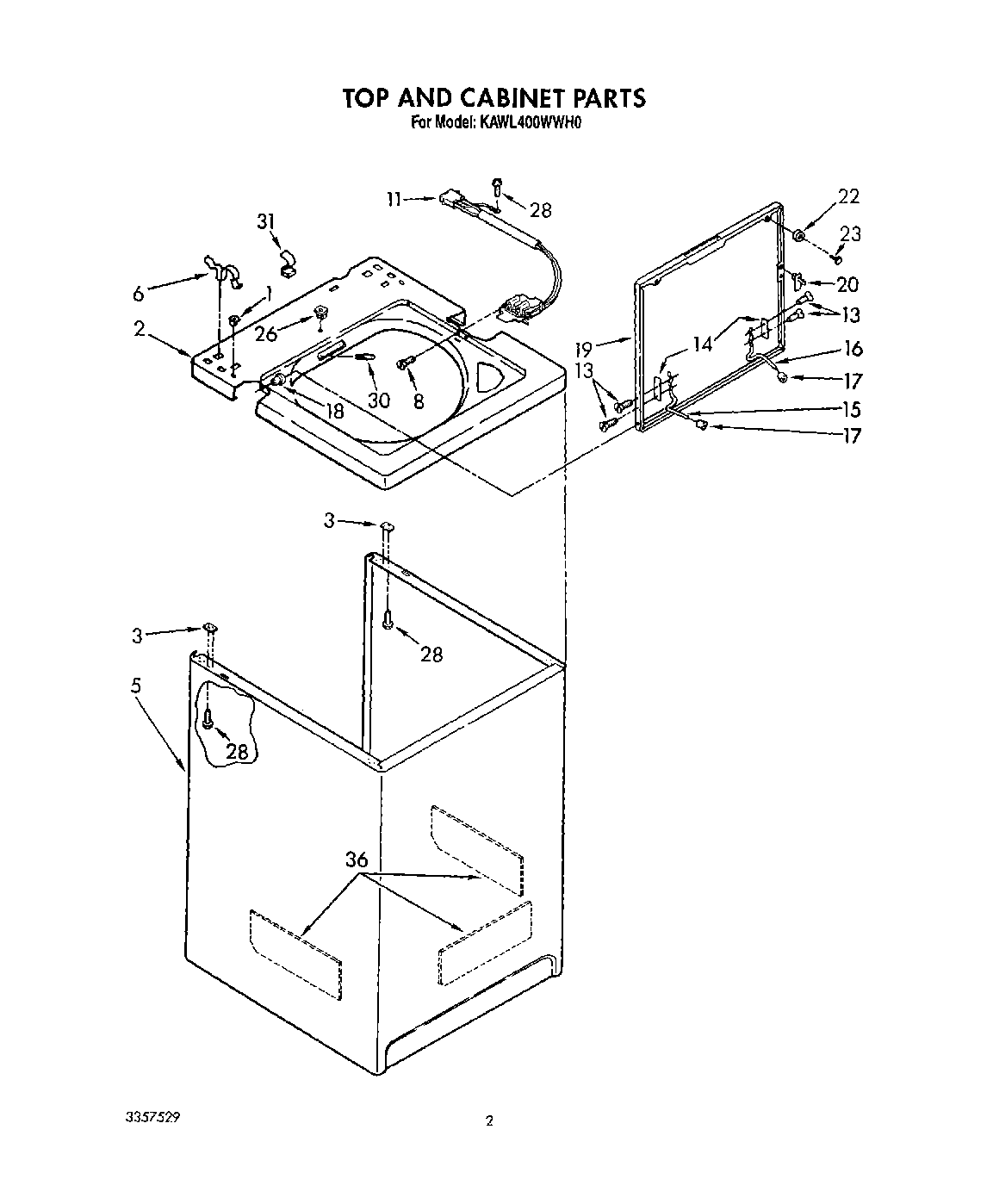 KAWL400WAL0 02 – TOP AND CABINET, LIT/OPTIONAL