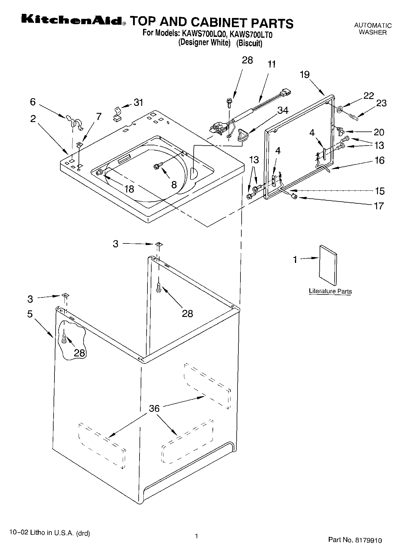 KAWS700LQ0 01 – TOP AND CABINET, LITERATURE