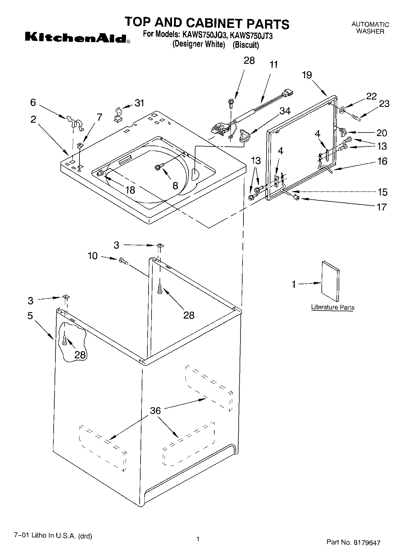 KAWS750JQ3 01 – TOP AND CABINET, LITERATURE