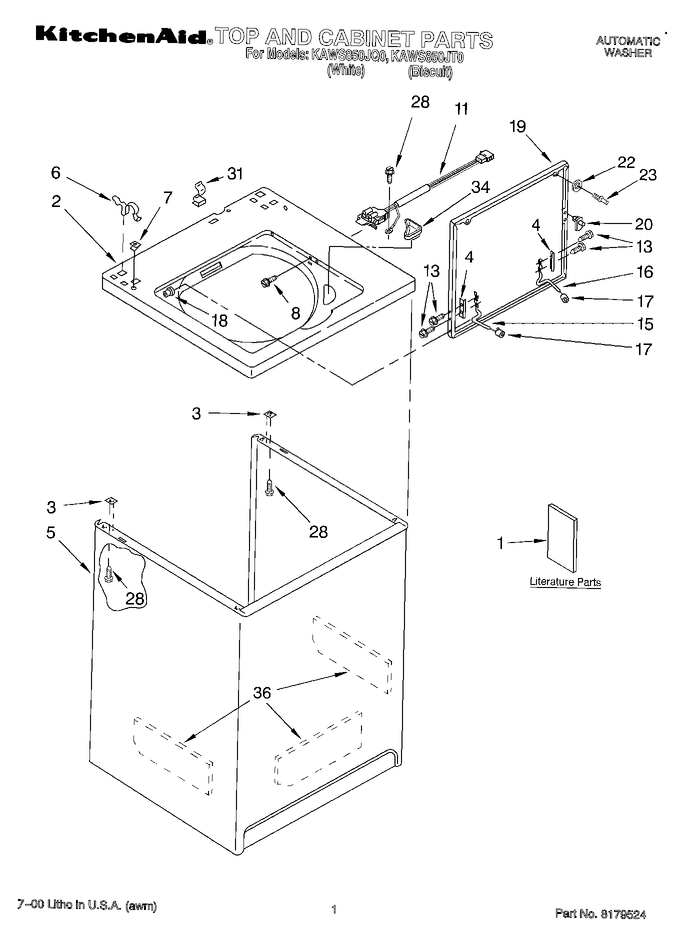 KAWS850JT0 01 – TOP AND CONSOLE, LITERATURE