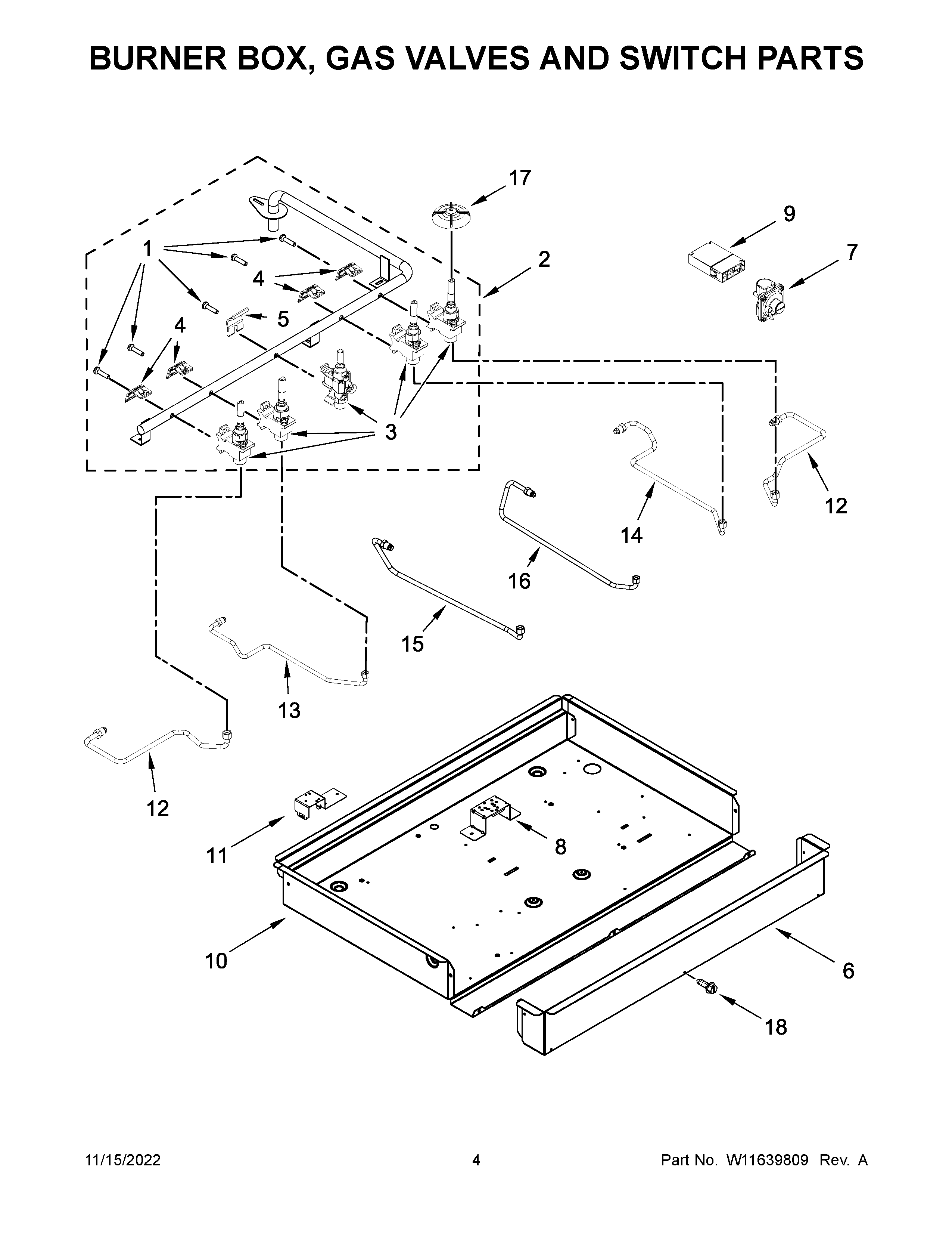 KCGS556ESS05 03 – BURNER BOX, GAS VALVES AND SWITCH PARTS