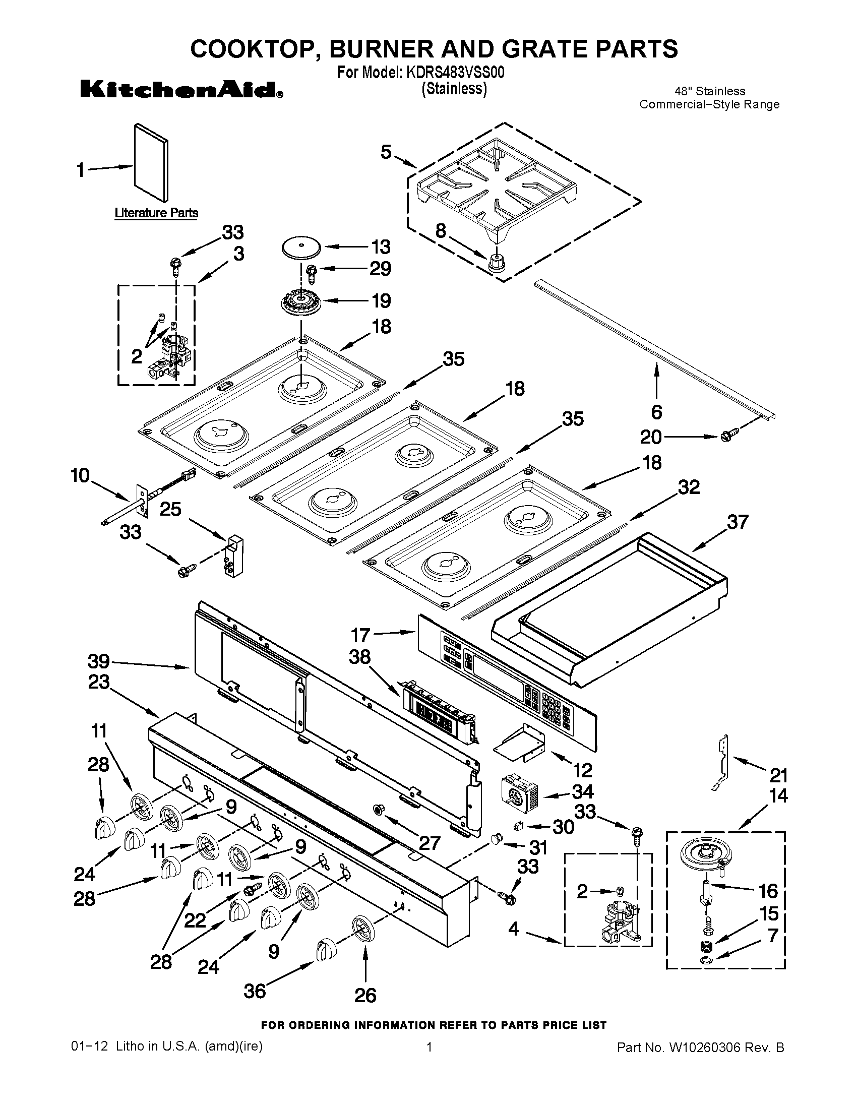 KDRS483VSS00 01 – COOKTOP, BURNER AND GRATE PARTS