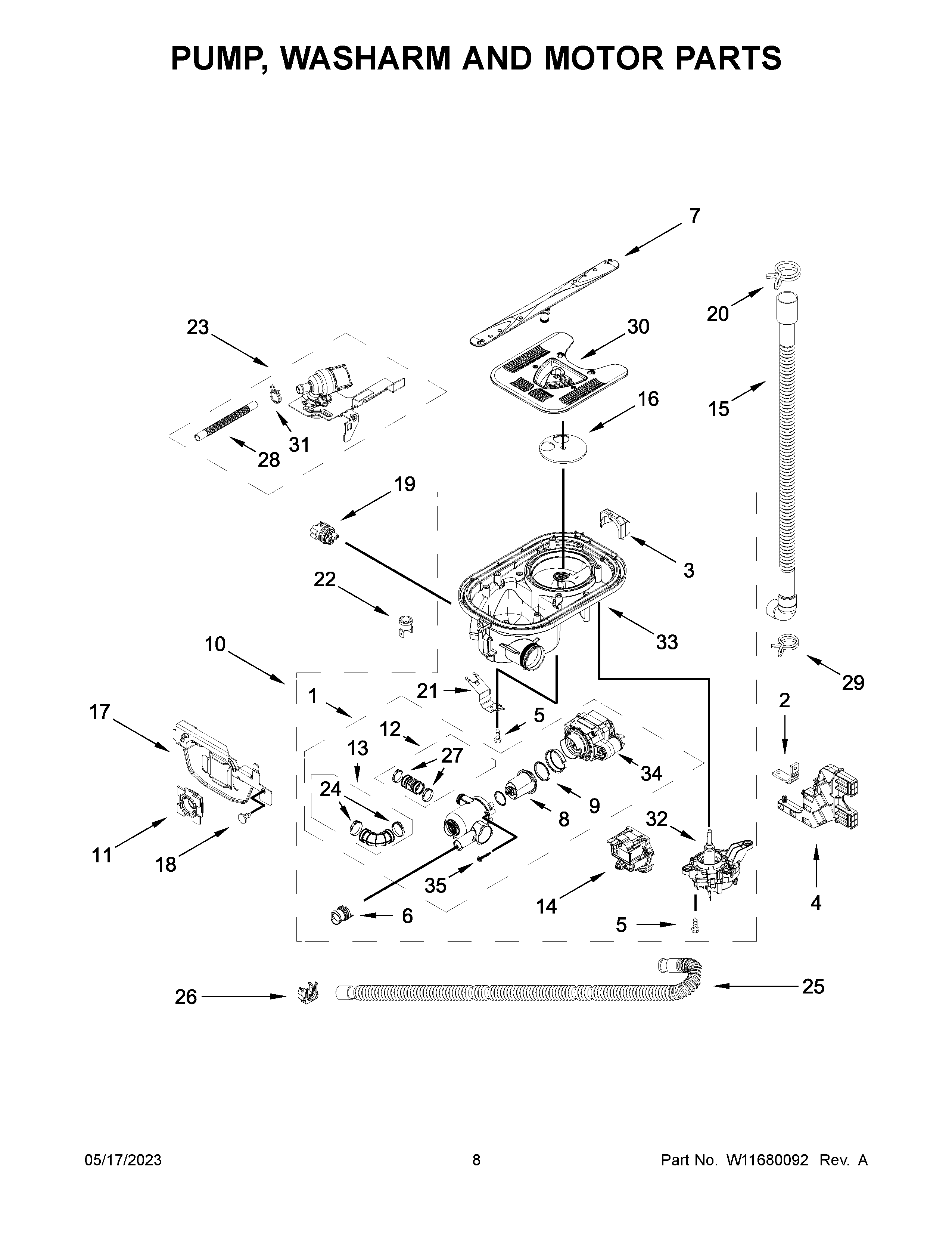 KDTM404KBS2 05 – PUMP, WASHARM AND MOTOR PARTS